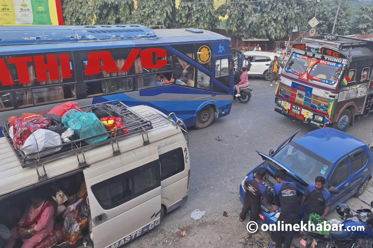 सवारी चापका कारण कुरिनटारसम्म पनि सडक जाम भएको छ ।