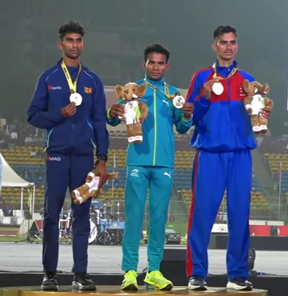 - पुरुष ५००० मिटर दौडमा नेपालका मुकेश पालले १५ मिनेट २५.५४ सेकेण्डमा दौड पूरा गरी कांस्य पदक जितेका छन्।