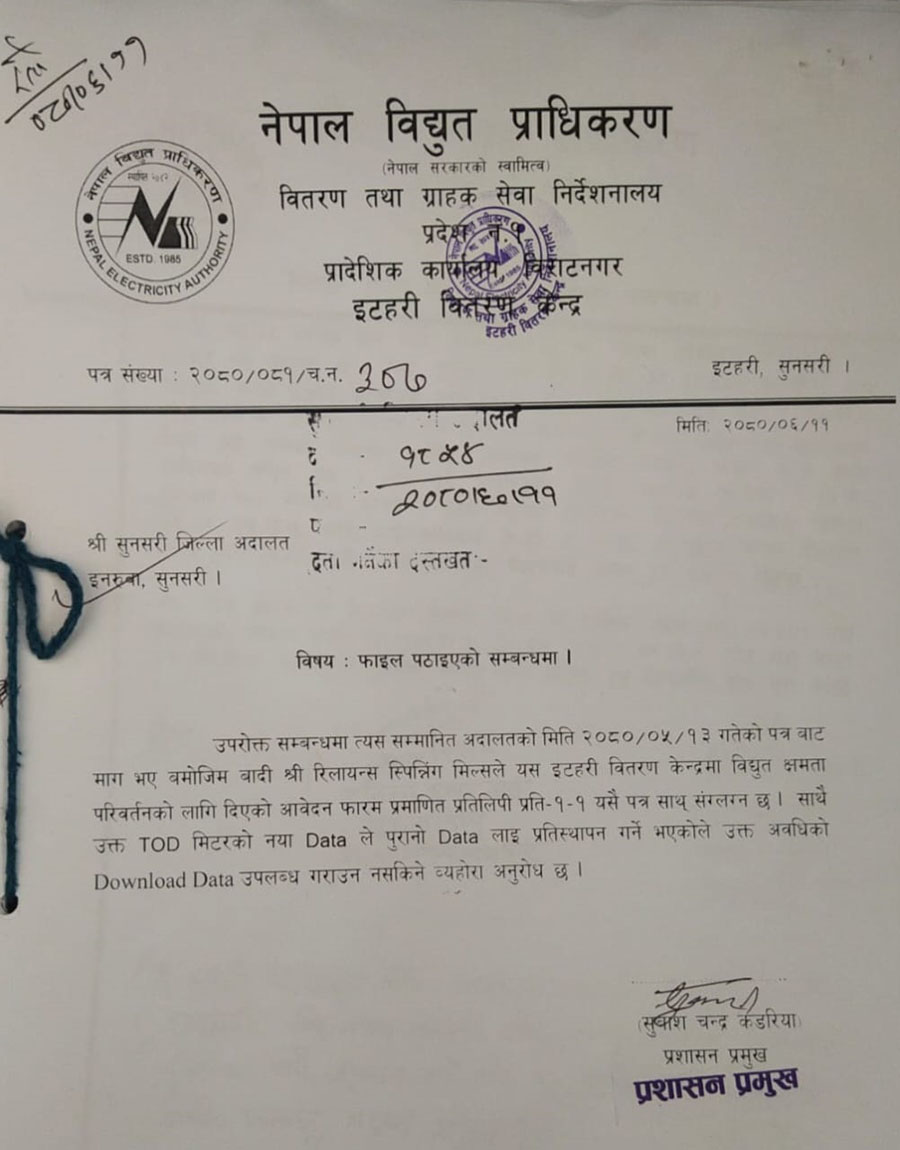 प्राधिकरणले मकवानपुर जिल्ला अदालतलाई १८ भदौ २०८० र सुनसरी जिल्ला अदालतलाई ११ असोज २०८० मा पठाएको पत्रमा टीओडी मिटरको तथ्यांक प्राधिकरणसँग नभएको स्पष्ट लेखिएको छ ।