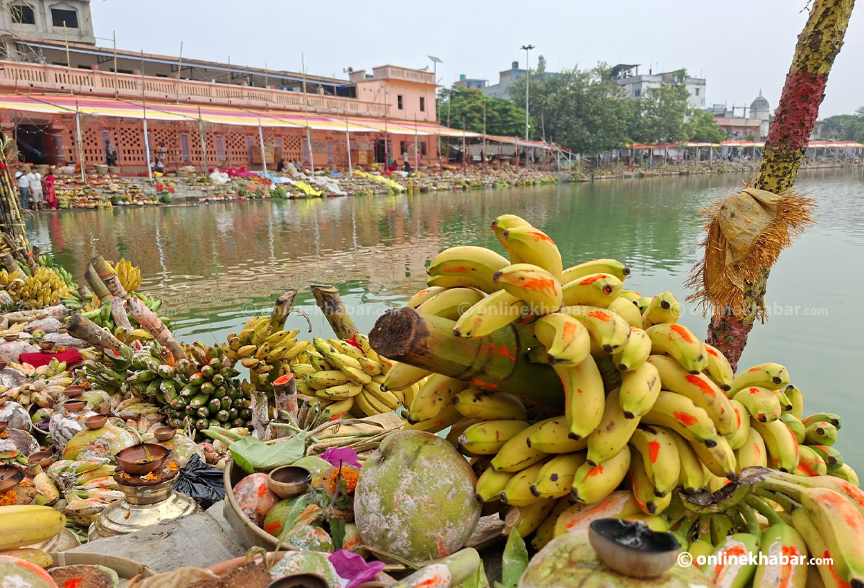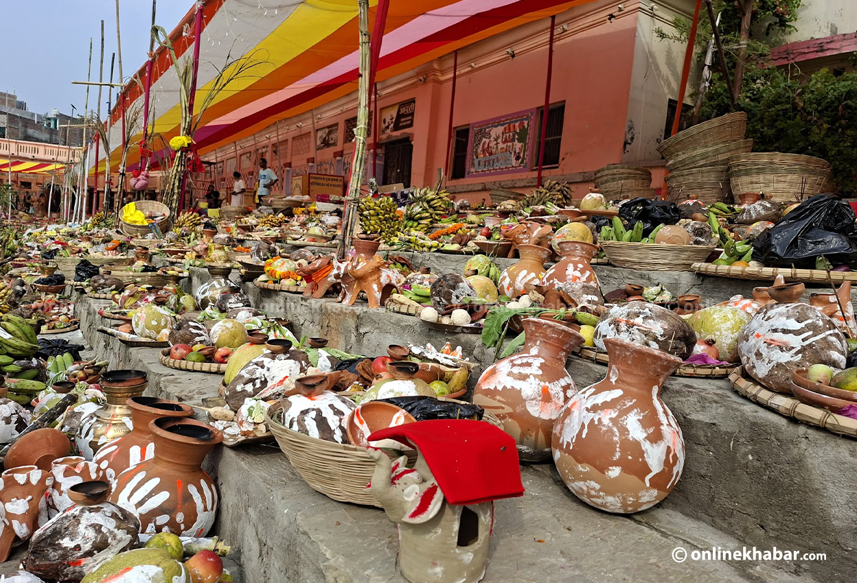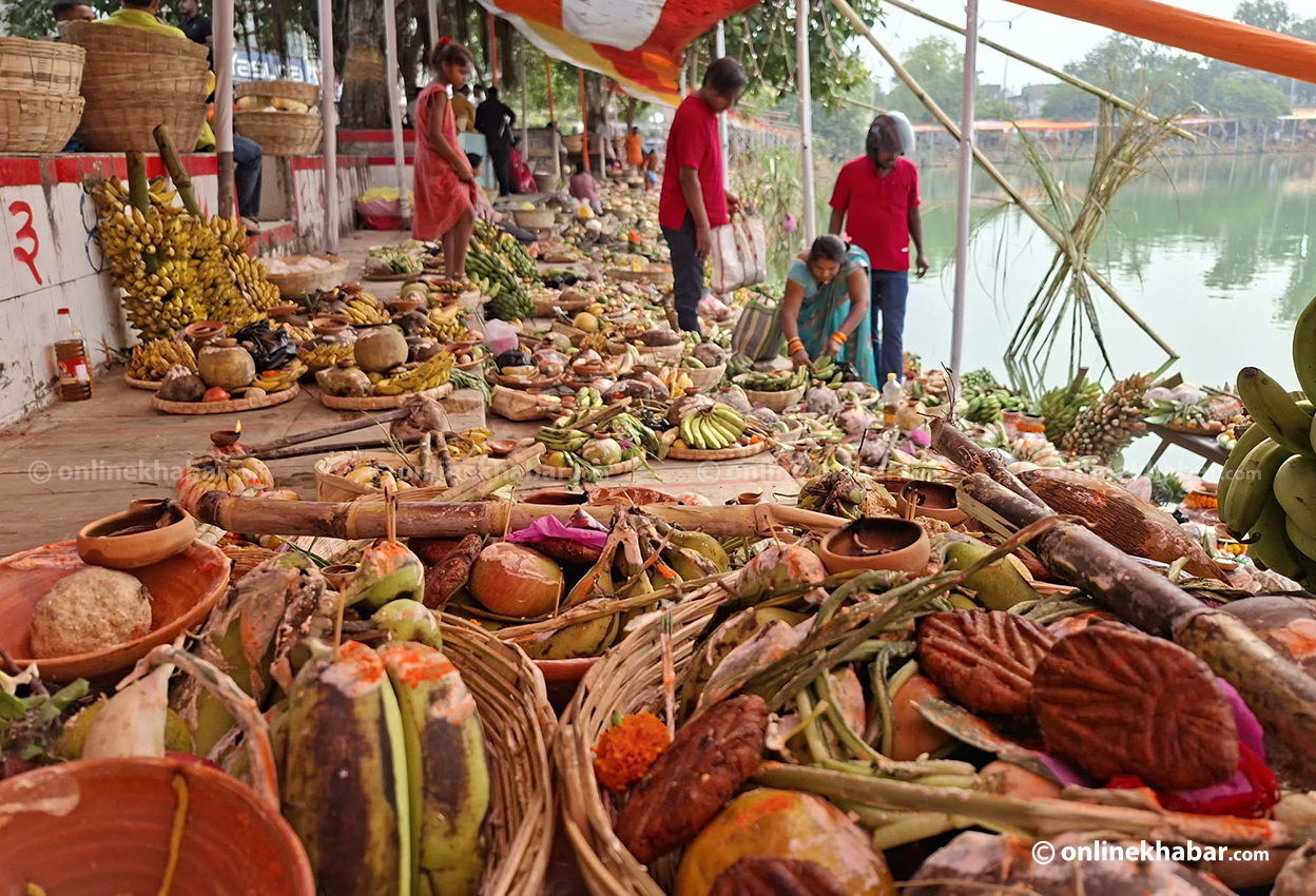 वर्तालुहरूले जनकपुरधामको धार्मिक तथा ऐतिहासिक पोखरी तथा नदी किनाराका छटघाटहरूमा पूजा सामग्रीहरू सजाएर राखेका छन् । अस्ताउँदो सूर्यलाई अर्घ्य दिनका लागि वर्तालुहरू छठघाटमा भेला हुन थालिसकेका छन् ।