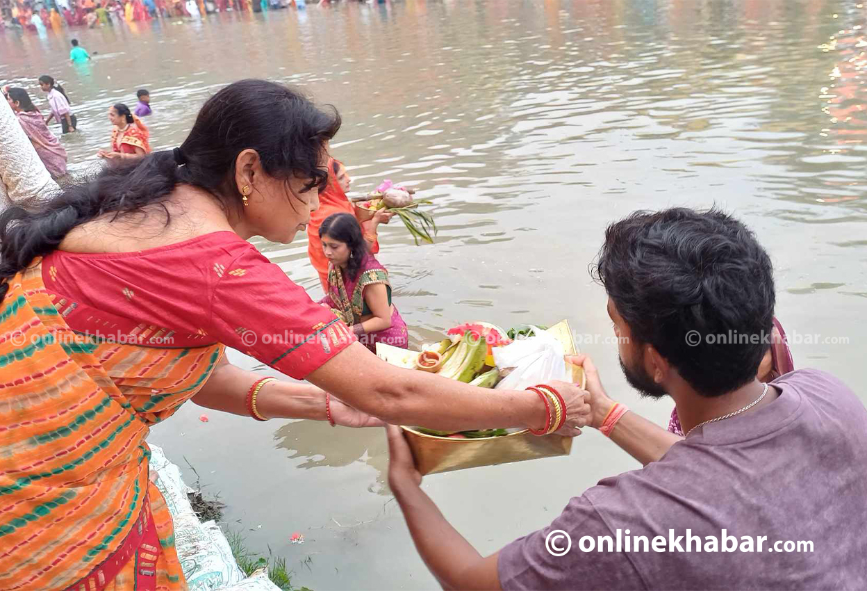 सूर्यदेव र षष्ठीदेवी (छठीदेवी) को आराधना गरिने चार दिने यो पर्वको आज मुख्य दिन मानिन्छ ।