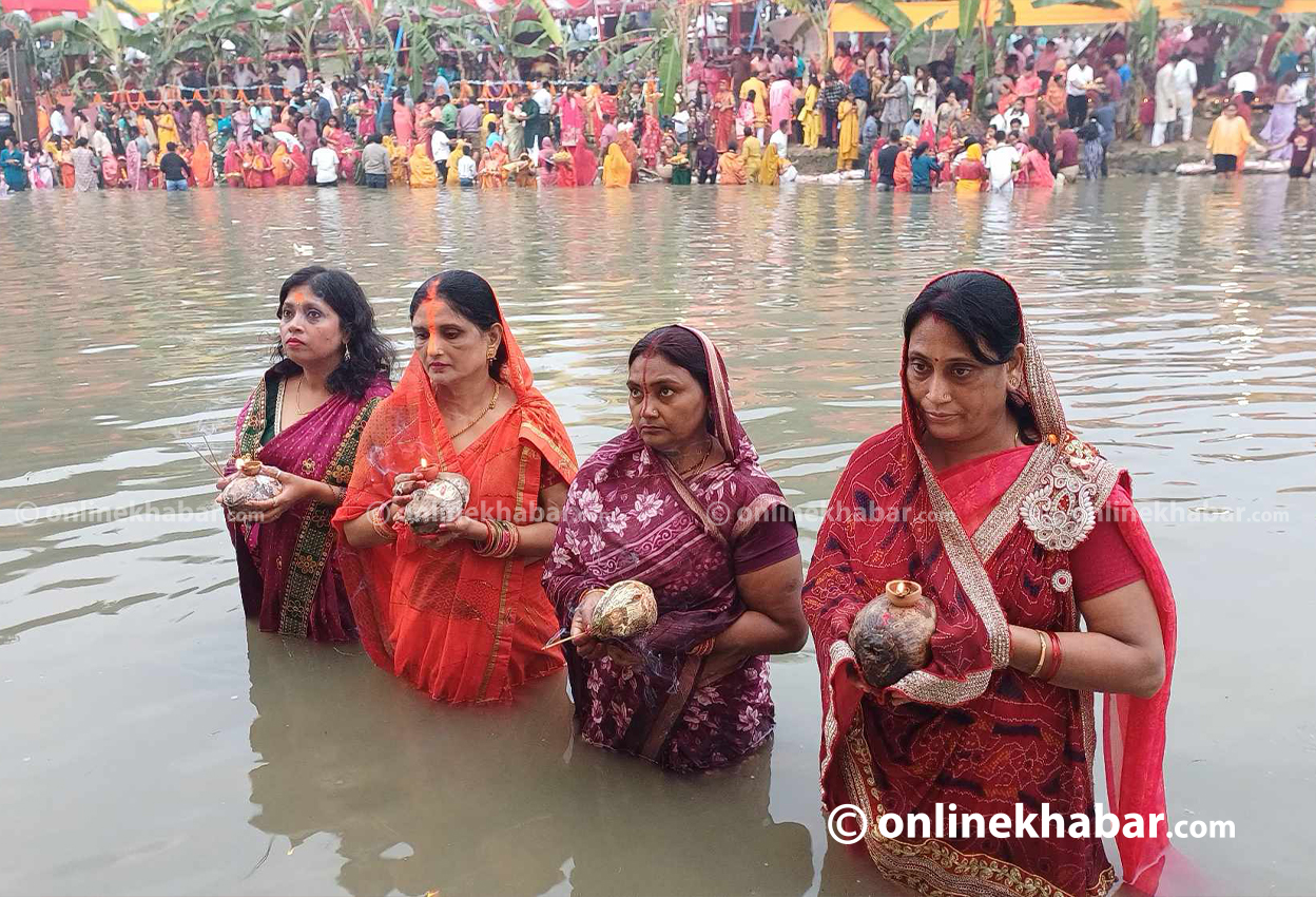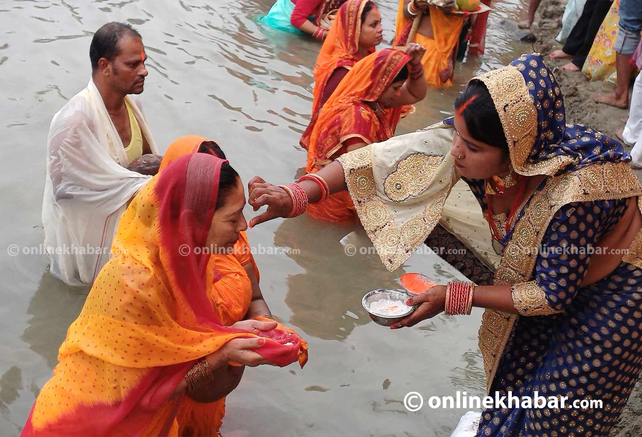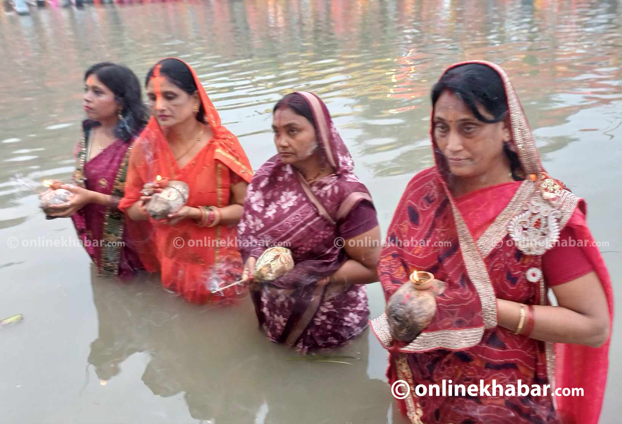 - विराटनगरको हाटखोलास्थित सिंघिया घाटमा व्रतालुहरूले सूर्यदेव र षष्ठीदेवीको आराधना गरिरहेका छन्।