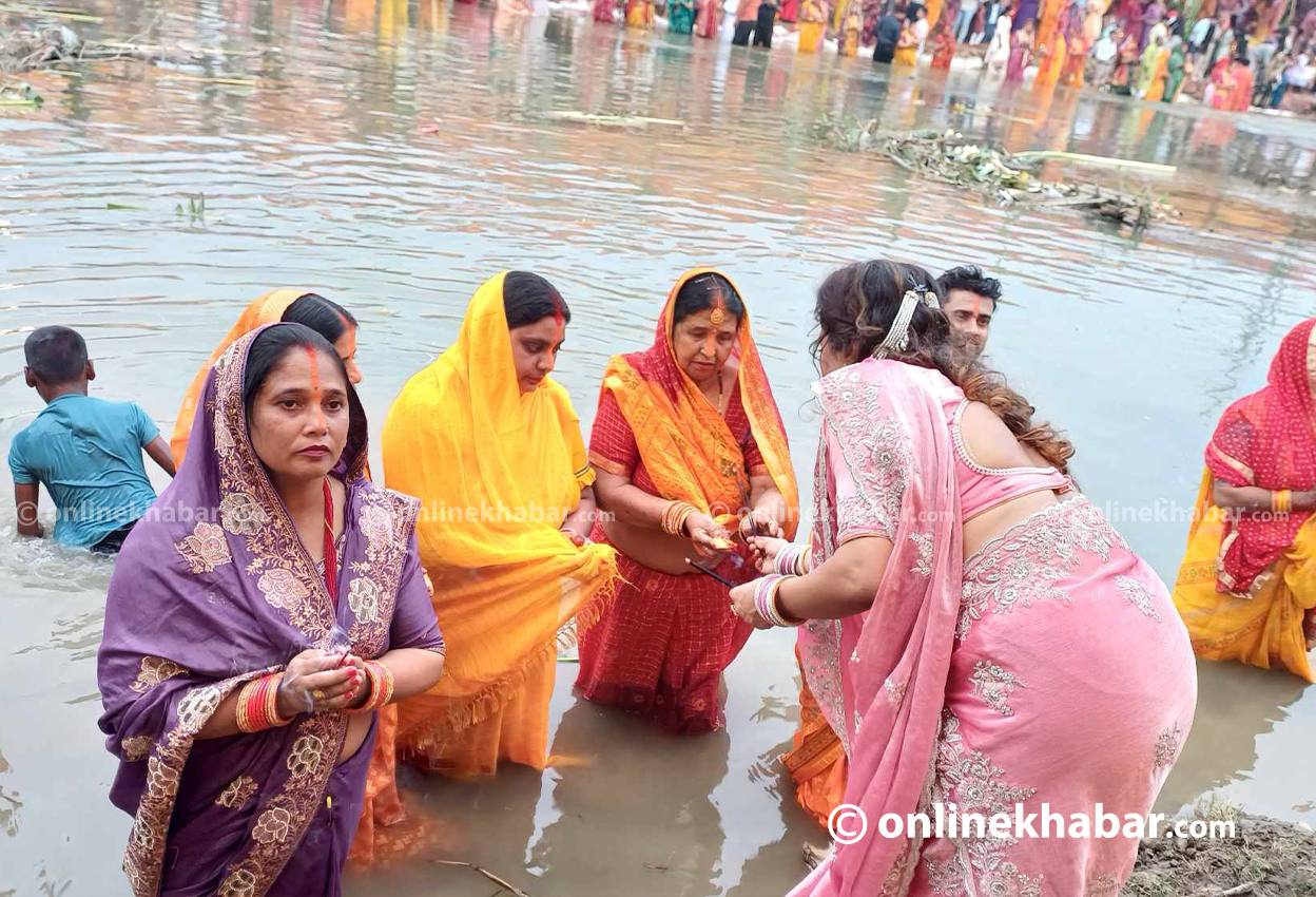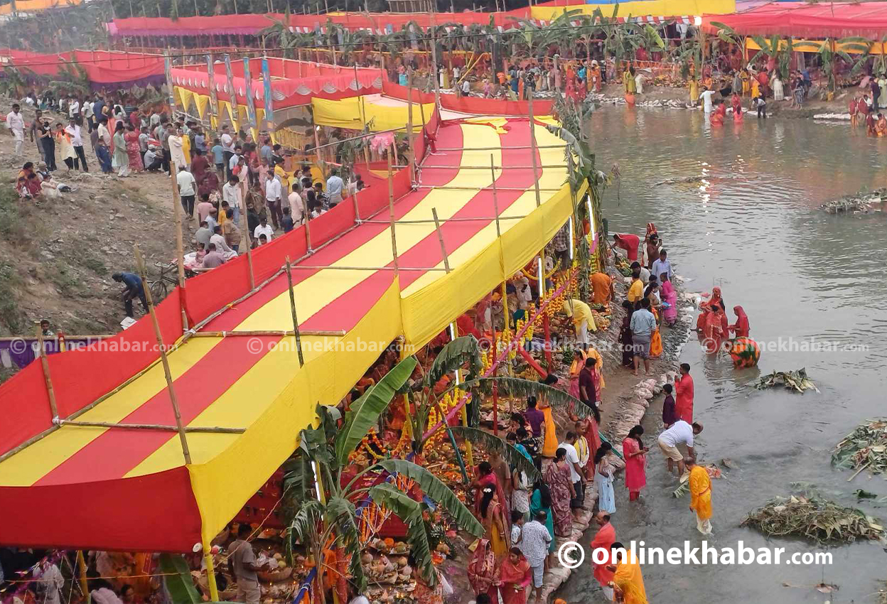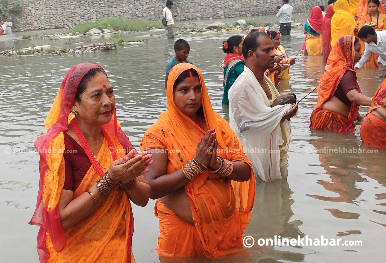 - विराटनगरको हाटखोलास्थित सिंघिया घाटमा व्रतालुहरूले सूर्यदेव र षष्ठीदेवीको आराधना गरिरहेका छन्।