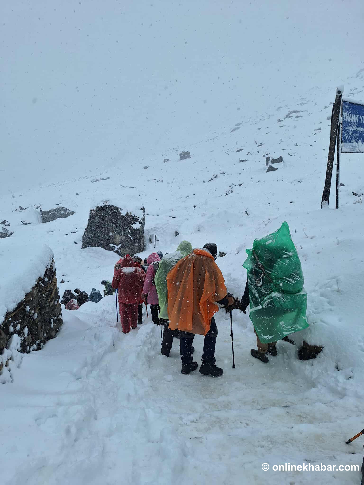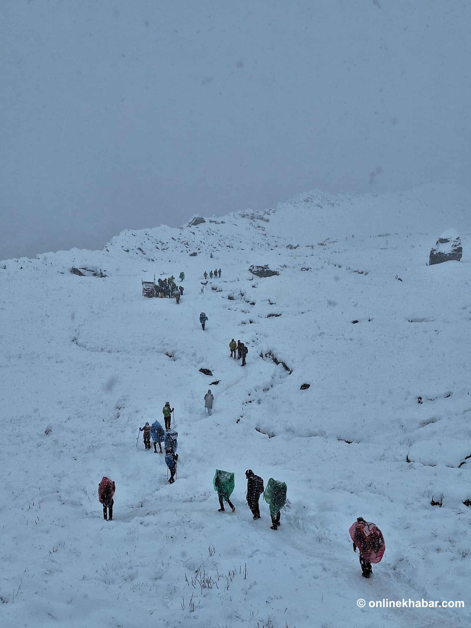 सो स्थानमा केही पदयात्रीहरु तल झर्न र माथि उक्लिन सकिरहेका छैनन् । उनीहरुलाई सहजीकरण गर्नका लागि नेपाल प्रहरी, सशस्त्र प्रहरी बल र स्थानीय उद्धारकर्मी इन्द्र शेरचन थकाली सहितको टोली खटिएको छ । सो टोली अन्नपूर्ण गाउँपालिकासँग समन्वय गरी परिचालित भएको हो ।