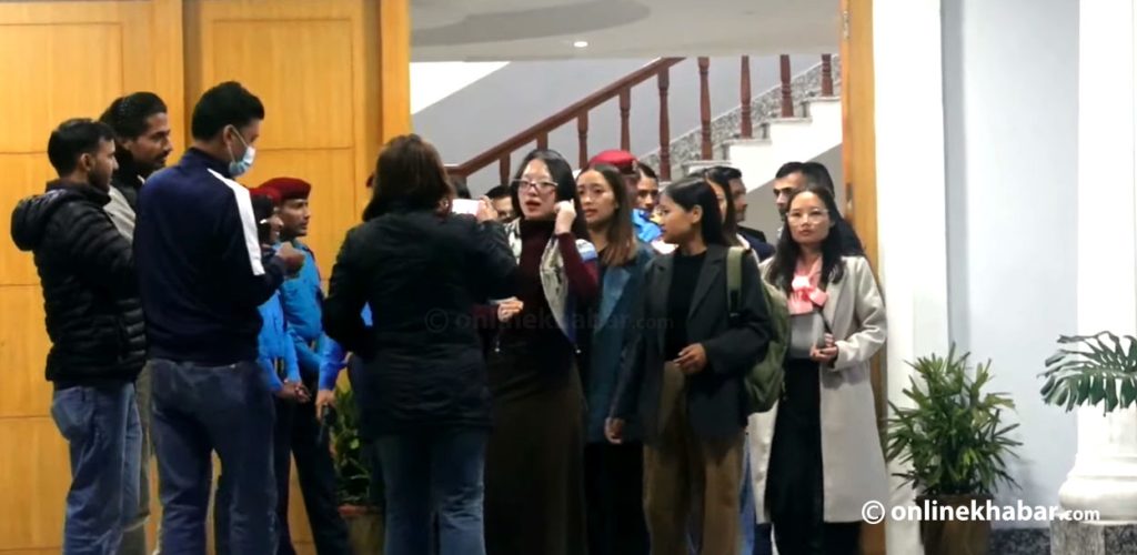 प्रधानमन्त्रीसँगको छलफलपछि बाहिरिंदै जेनजी युनाइटेडका प्रतिनिधि ।