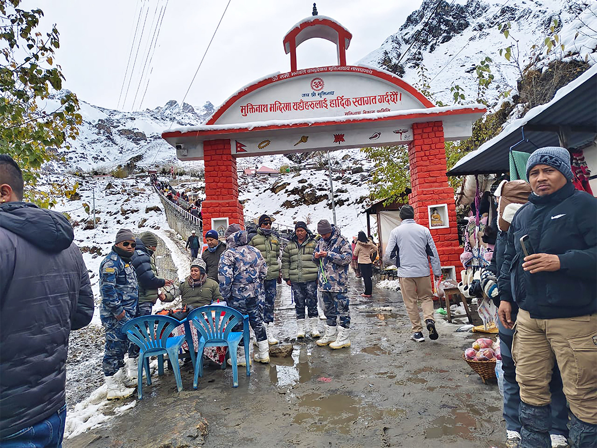मुक्तिनाथ क्षेत्रमा मंगलबार दिनभर बाक्लो हिउँ परेको थियो। हिमपातका कारण मुक्तिनाथ बसपार्कदेखि मुक्तिनाथ मन्दिरसम्मको पैदलमार्गमा बाक्लो हिउँ जमेको थियो । पैदलमार्गमा हिउँ जमेपछि मुक्तिनाथ दर्शन गर्न जाने दर्शनार्थी समस्यामा परेका थिए।