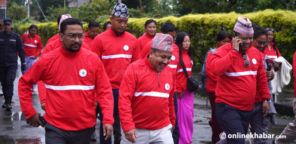 पार्टी घोषणा गरेका चौधरीसहितका नेताहरू बिहीबार दल दर्ताको प्रयोजनका लागि एउटै पोशाकमा निर्वाचन आयोग पुगेका हुन् ।