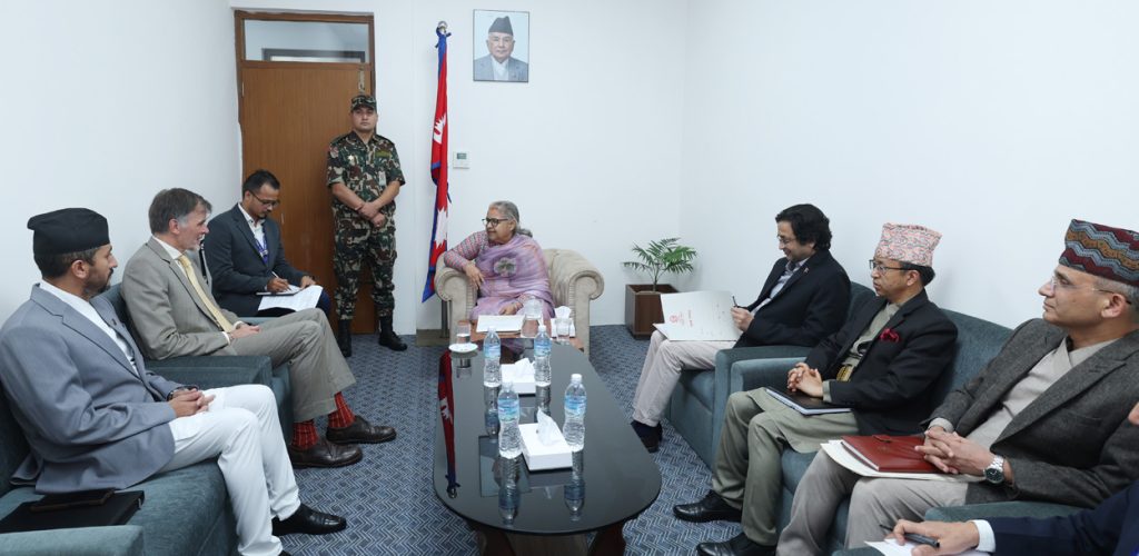 १३ कात्तिक, काठमाडौं । नेपालका लागि जर्मनीका राजदूत उडो भोल्जले प्रधानमन्त्री सुशीला कार्कीसँग आज शिष्टाचार भेट गरेकी छिन् ।