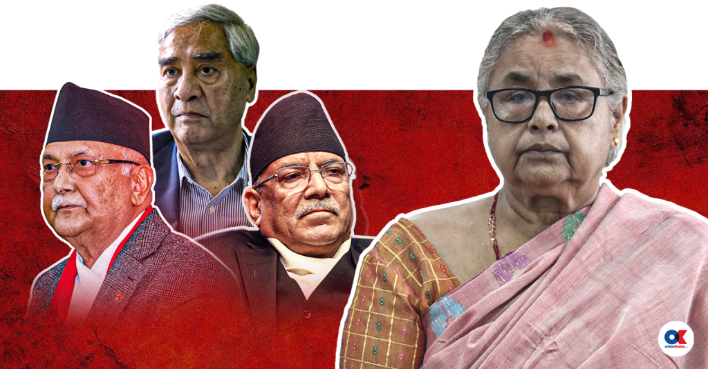 Generated by OK AI. Editorially reviewed.- प्रधानमन्त्री सुशीला कार्कीले ठूला तीन दलका शीर्ष नेतासँग भेट्ने इच्छा नभएको बताउनुभयो।