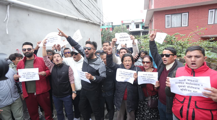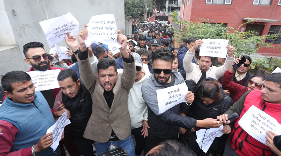 पार्टी कार्यालयको मूल गेटमा ताला लगाउने र प्रदर्शन गर्ने युवाहरू नेता शेखर कोइराला निकटका हुन् ।