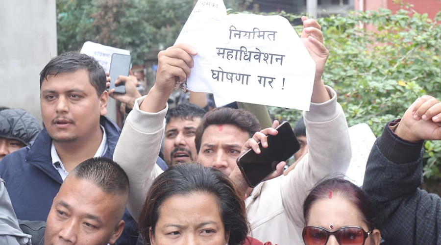 नियमित महाधिवेशनको माग राखेर उनीहरूले पार्टी कार्यालयको मूल गेटमा तालाबन्दी गरेका हुन् ।