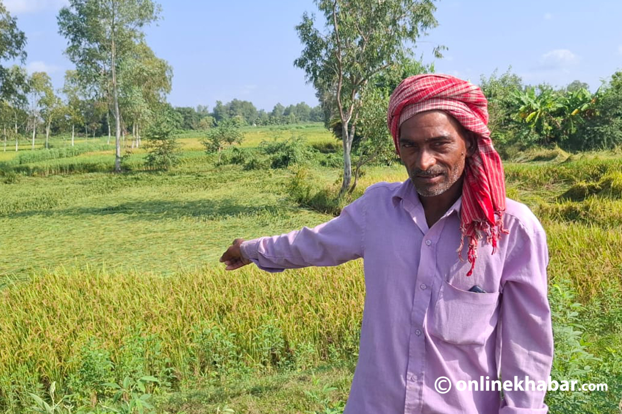असारमा पानी नपरेपछि उनले स्यालो टुबेलबाट सिंचाइ गर्दै, महँगोमा मल किनेर, ट्याक्टर भाडामा लिएर १४ कठ्ठा खेतमा धान रोपे । यही उब्जनीबाट उनको १० जनाको परिवारको वर्षभरिको गुजारा चल्छ । दुई क्विन्टल मल प्रयोग गरी उनले रातदिन सिंचाइ गरेर धान रोपेका थिए । तर वर्षाले झन्डै आधा धान नष्ट हुने स्थितिमा छ ।
