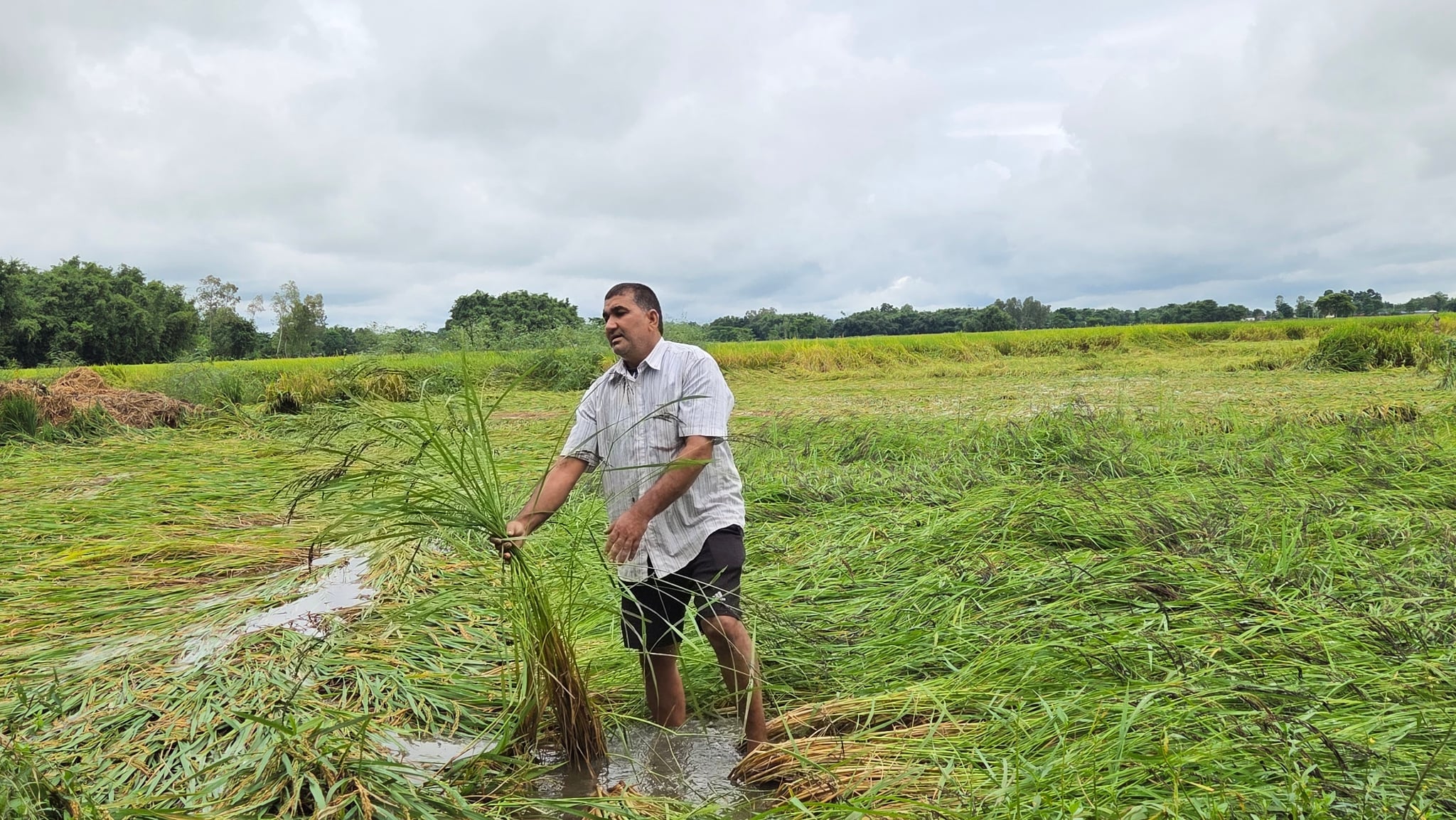 ‘खेतमै काटेर राखिएको धान सबै पानीले भिजेर कुहिएको छ,’ उनले दु:खेसो गरे, ‘काट्न बाँकी रहेको ठाडो धान समेत उम्रिएर, बोटमै हरियो दुई–दुई पात पलाएको छ ।’