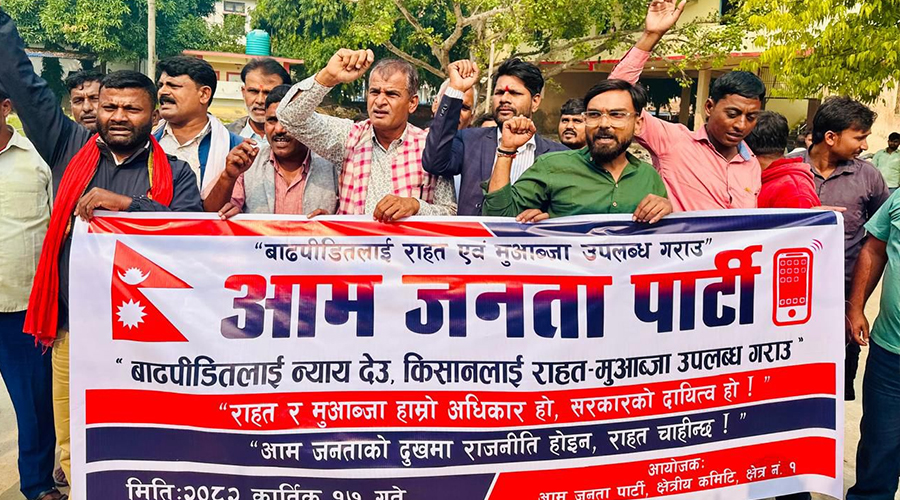 Generated by OK AI. Editorially reviewed.- आम जनता पार्टीले बाढीपीडित किसान र सर्वसाधारणलाई राहत तथा मुआब्जा उपलब्ध गराउन सरकारसंग माग गरेको छ।