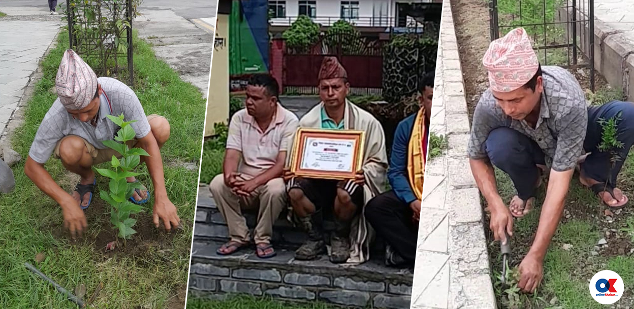 Generated by OK AI. Editorially reviewed.- पोखरामा शहरी विकास भवन कार्यालयका सवारी चालक सीताराम दाहालले २०५५ सालदेखि सार्वजनिक स्थानमा बोटबिरुवा रोपेर संरक्षण गर्दै वातावरण संरक्षणमा योगदान दिइरहेका छन्।