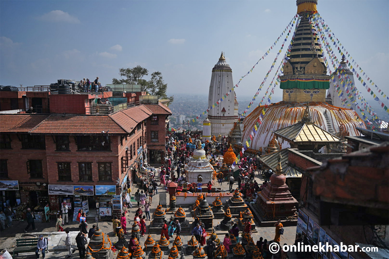 Generated by OK AI. Editorially reviewed.- काठमाडौंको स्वयम्भू महाचैत्यमा कात्तिक शुक्ल पूर्णिमाको दिन ८४ हजार धर्म स्कन्ध, ८४ व्यञ्जन, ८४ हजार फूल र ८४ अष्ट परिस्कारसहित पूजा गरिएको छ।