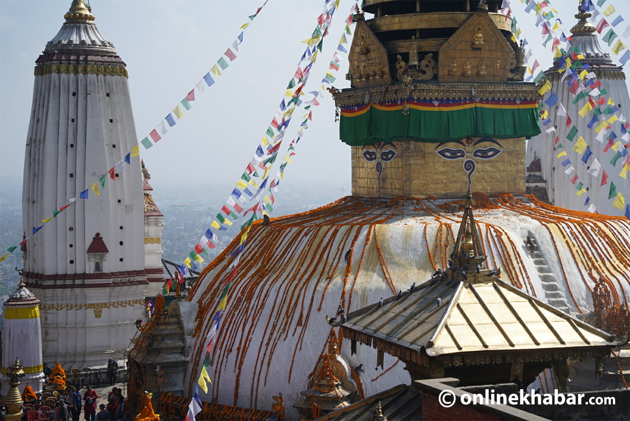 १९ कात्तिक, काठमाडौं। काठमाडौंको स्वयम्भू महाचैत्यमा ८४ हजार धर्म स्कन्ध (बुद्धको उपदेश/देशना), ८४ व्यञ्जन, ८४ हजार फूल र ८४ अष्ट परिस्कार (भिक्षुले अपनाउने व्यवहार)ले कूल पूजा गरिएको छ ।