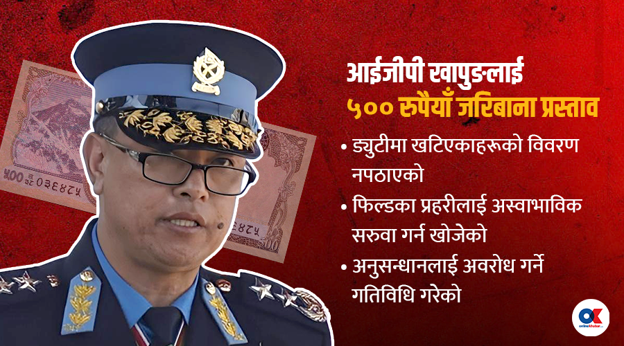 आयोगले बुधबार आईजीपी खापुङलाई अनुसन्धानमा निरन्तर असहयोग गरेको आरोपमा सोधेको स्पष्टीकरणमा पाँच सय रुपैयाँ जरिबानाको प्रस्ताव नै रहेको प्रहरी मुख्यालय सम्बद्ध स्रोतले बतायो ।