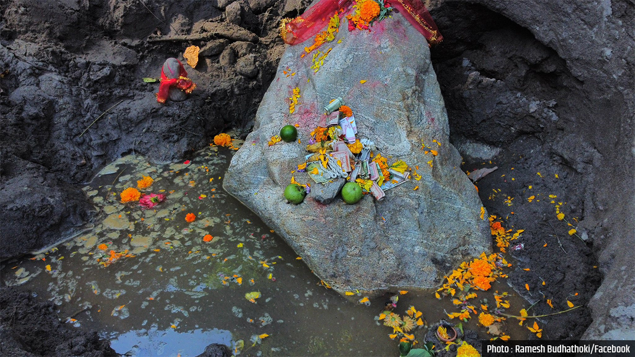 ‘माताले सपनामा देखेको भनेपछि उत्खनन गर्दा भनेअनुसार नै रूखले किचेको अवस्थामा शिला भेटियो । खोलापट्टि टिनको पाताले छेकेको पनि थियो’ उनले भने, ‘अहिले लाने कि त्यहीं राख्ने भन्ने अन्योल छ ।’