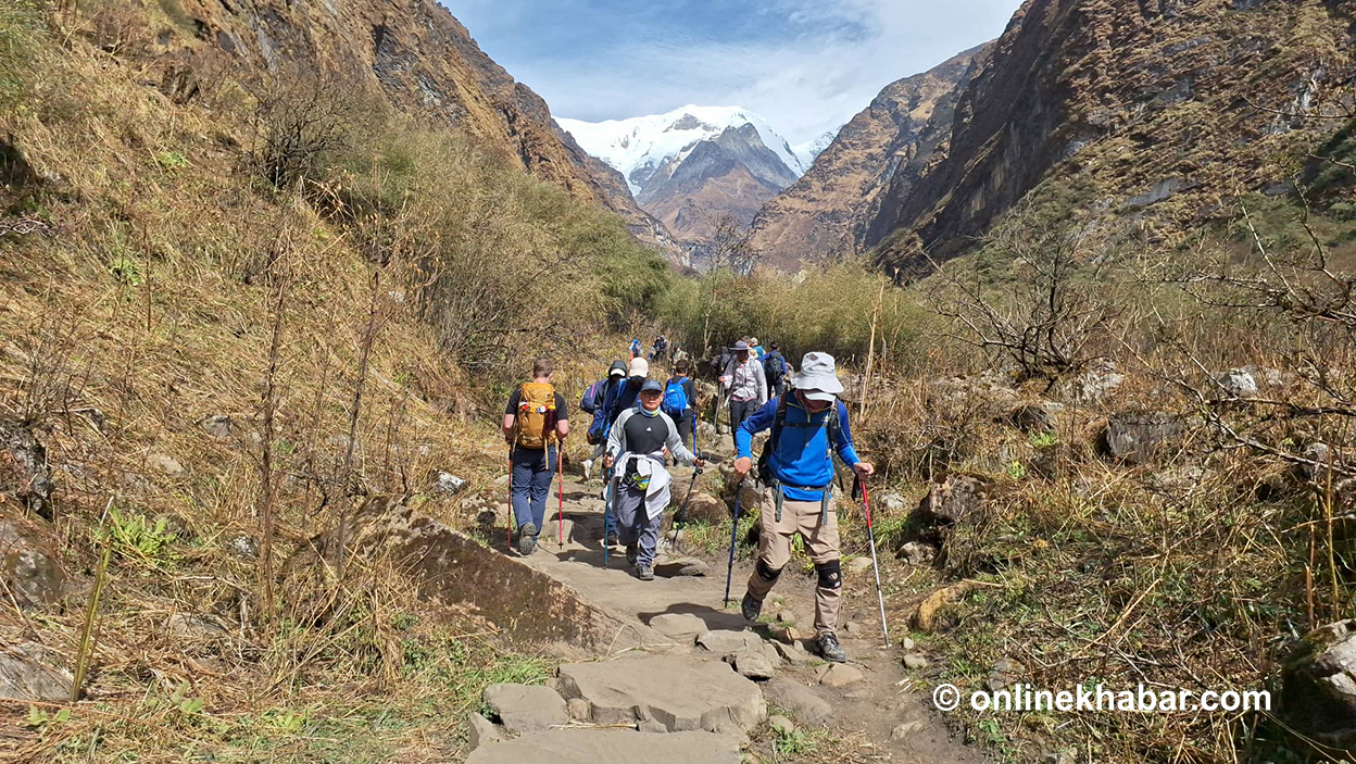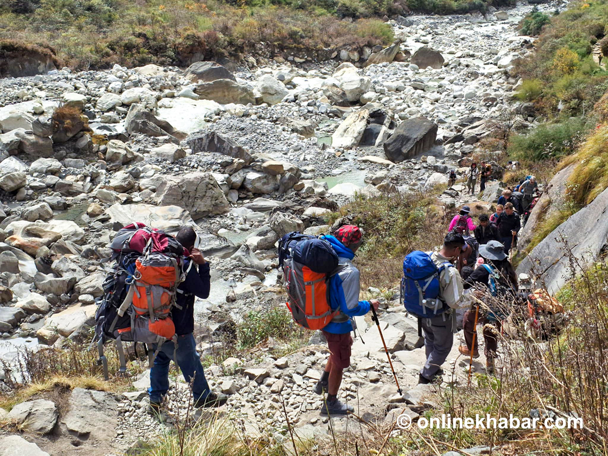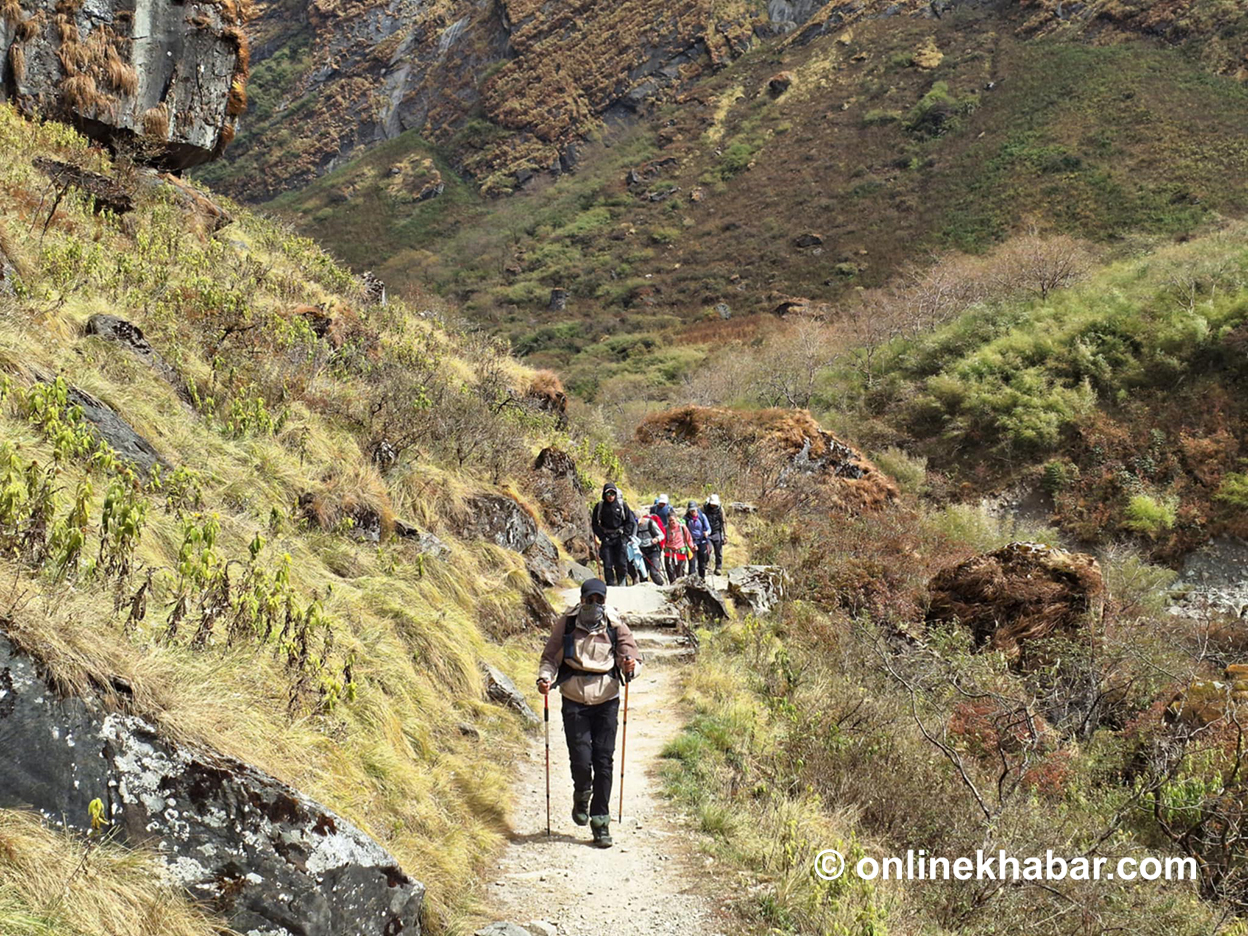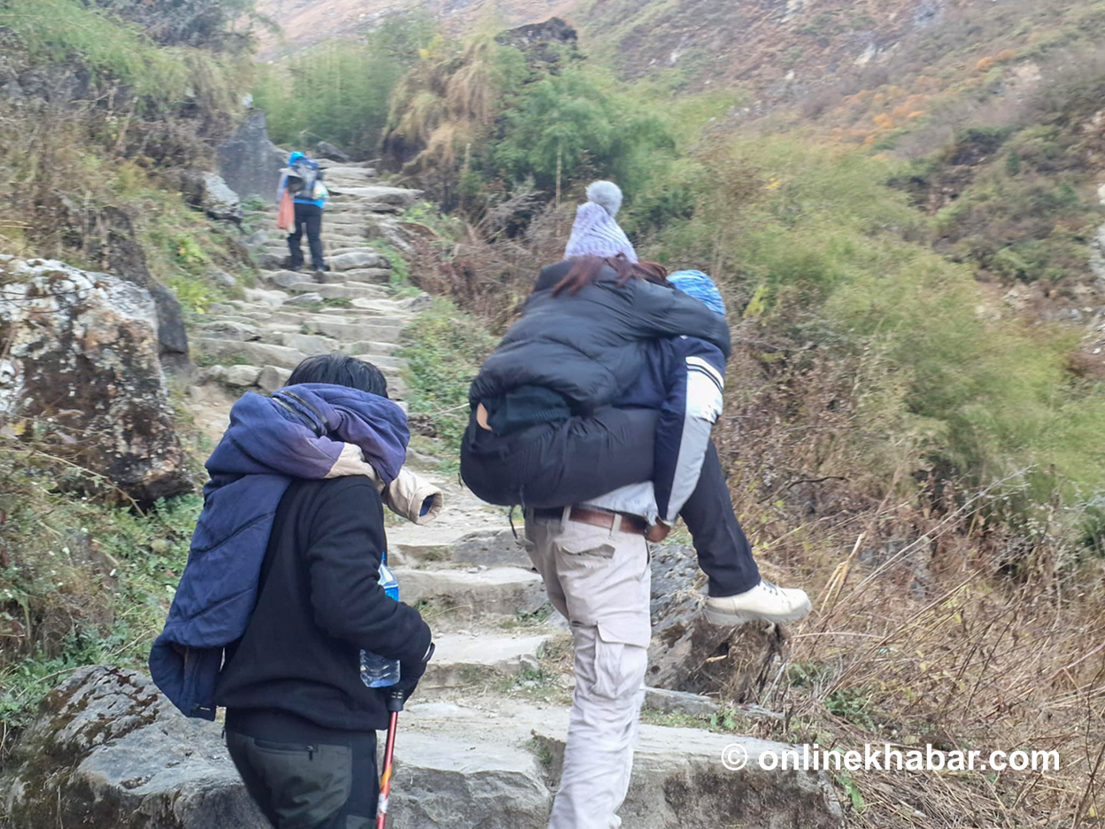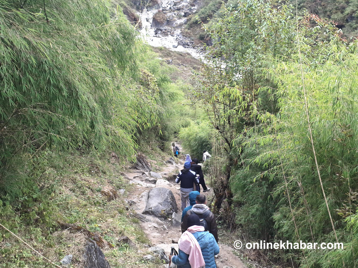 ‘नेपालीलाई बढी लेक लाग्छ । आन्तरिक पर्यटकसँग पदयात्राको संस्कार छैन । प्रकृति मन पराउँछन् तर कसरी हिँड्नुपर्छ भन्ने संस्कार छैन,’ ट्रेकिङ गाइड कृष्ण राईले भने, ‘दिनमा ५-६ घण्टा हिँड्नुपर्नेमा १०-१२ घण्टा हिँड्छन् ।’