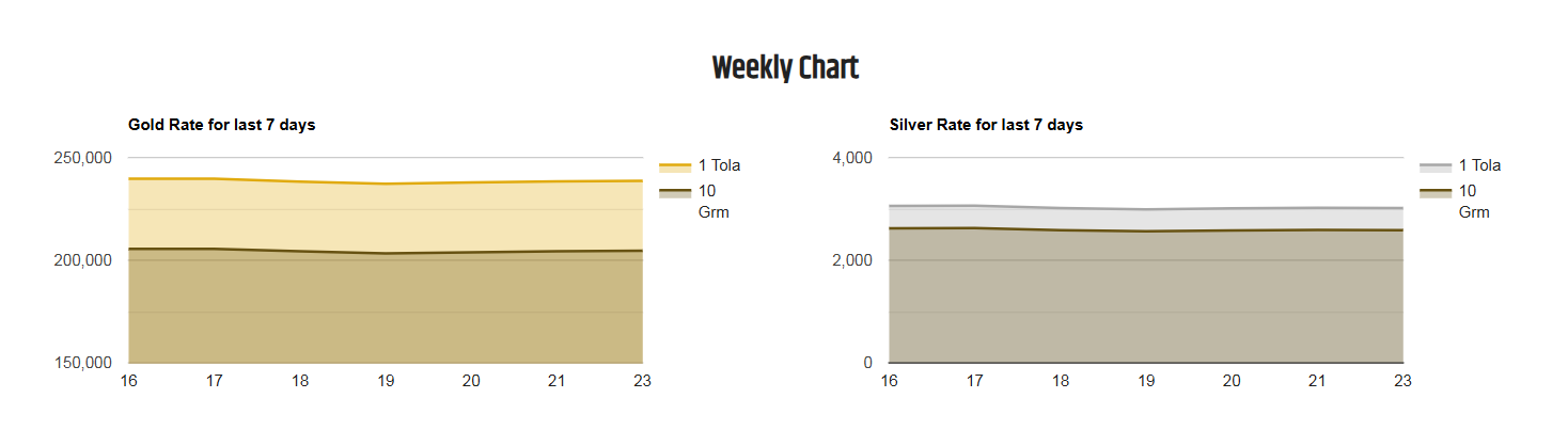 पछिल्लो साता सुनचाँदीको मूल्यमा ठुलो हलचल देखिएको छैन ।