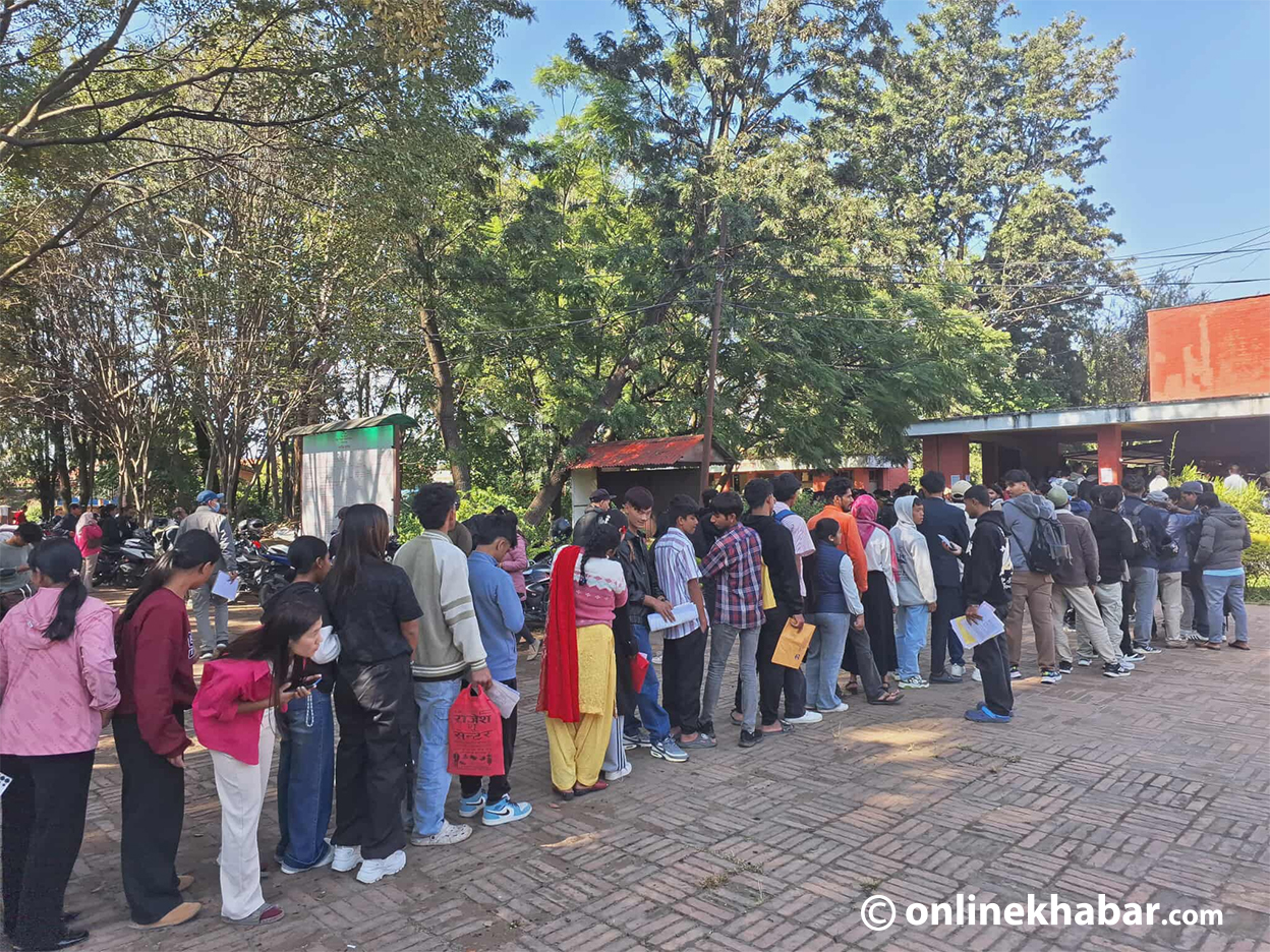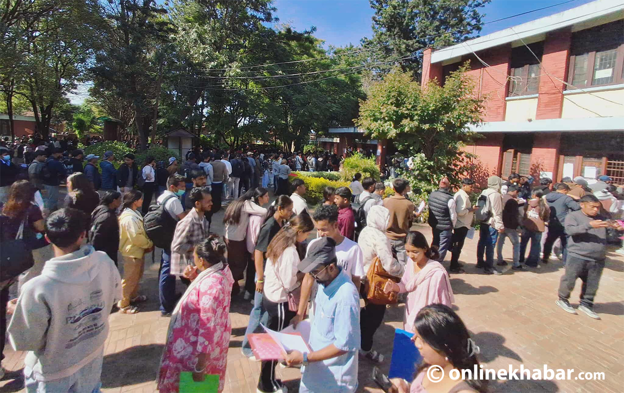 २३ कात्तिक, काठमाडौं। सानोठिमीस्थित परीक्षा नियन्त्रण कार्यालय, कक्षा १० को कार्यालयमा विद्यार्थीको भिड लागेको छ।