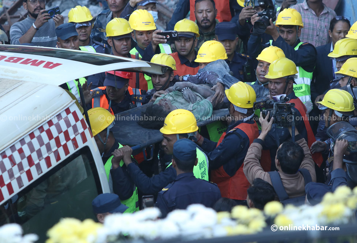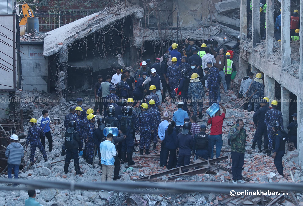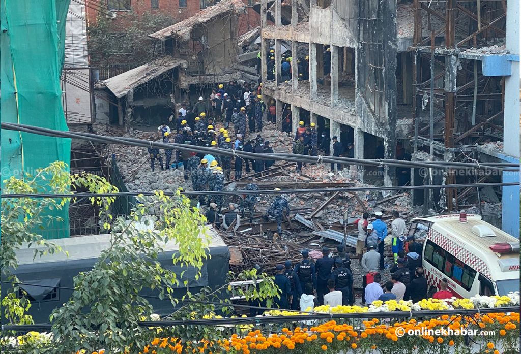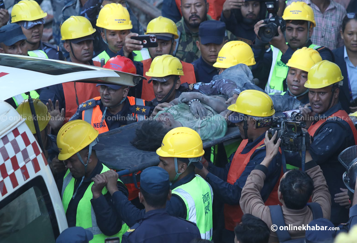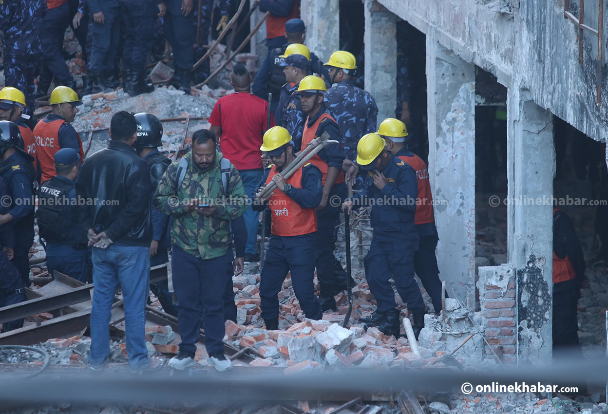भग्नावशेषमा परिणत भएको भवनलाई भत्काउने क्रममा आइतबार दुई जना घाइते भएका छन् ।