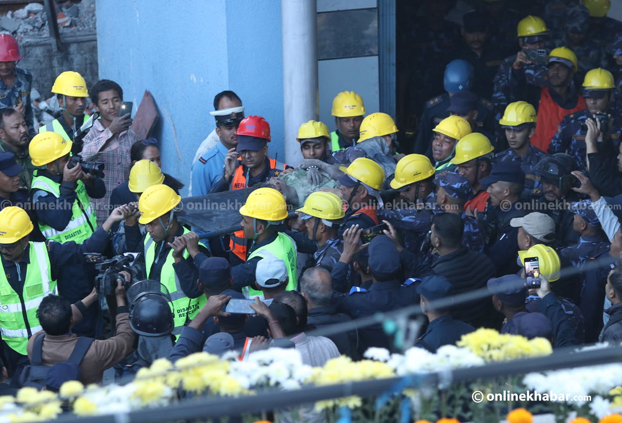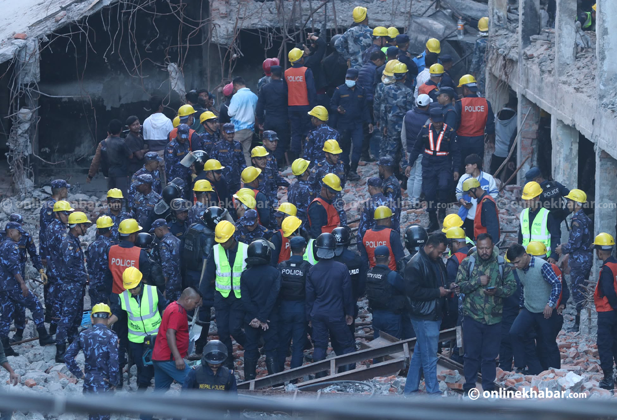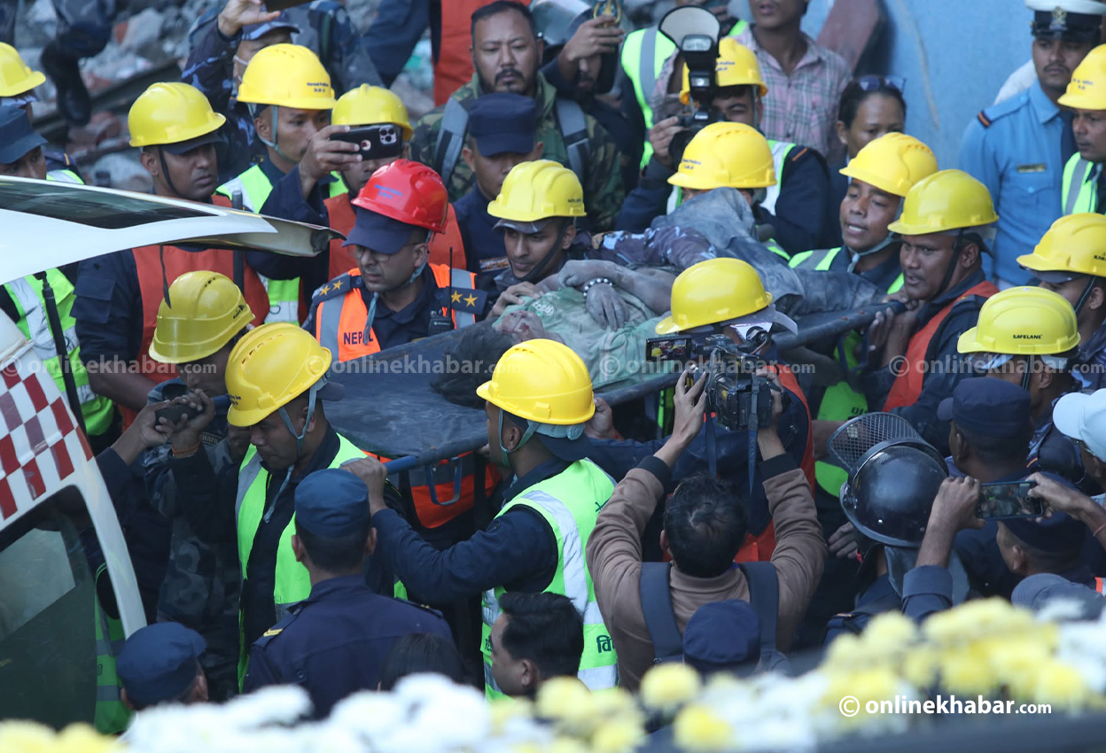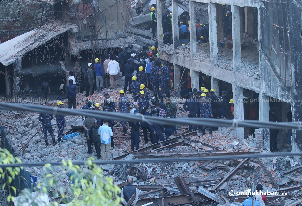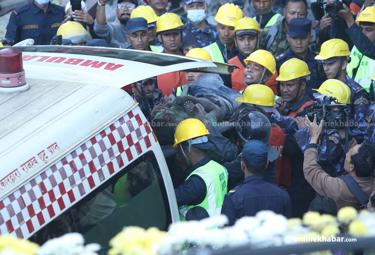 भग्नावशेषमा परिणत भएको भवनलाई भत्काउने क्रममा आइतबार दुई जना घाइते भएका छन् ।