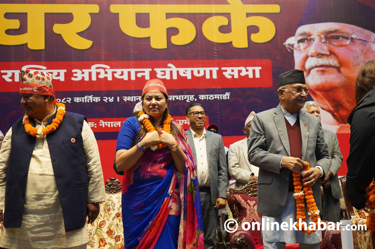 कार्यक्रममा एमाले अध्यक्ष केपी शर्मा ओलीले उनीहरूलाई पार्टीको झण्डासहित खादामाला लगाएर पार्टीमा स्वागत गरे ।