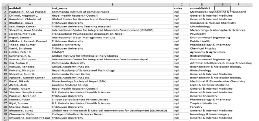 उक्त सूची अनुसार त्रिभुवन विश्वविद्यालयका ७ जना तथा नेपाल हेल्थ रिसर्च काउन्सिल (एनएचआरसी), बीपी स्वास्थ्य विज्ञान प्रतिष्ठान (बीपीकेएच) र अन्तर्राष्ट्रिय एकीकृत पर्वतीय विकास केन्द्र (इसिमोड)का २/२ जनालगायत समावेश छन्। जसमा त्रिभुवन विश्वविलालयका अजय भट्टराई, रमेश प्रसाद अधिकारी, भीष्म कार्की, त्रिविका निरञ्जन पराजुली, त्रिविका रामप्रसाद शर्मा, त्रिविका गोविन्द प्रसाद ढुंगाना र त्रिवि शिक्षण अस्पतालका रञ्जित कुमार साह रहेका छन् ।