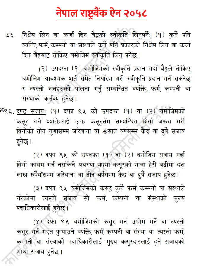ज्योति समूहलाई बैंकिङ कसुर तथा सजाय ऐन पनि आकर्षित हुने देखिन्छ । कुनै पनि व्यक्ति वा संस्थाले राष्ट्र बैंकको अनुमतिविना ऋण दिन नपाउने व्यवस्था रहेको राष्ट्र बैंकका एक उच्च अधिकारीले बताए ।
