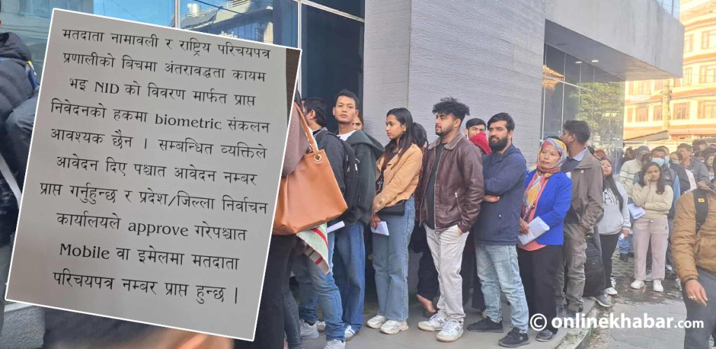 ‘राष्ट्रिय परिचयपत्र भएका नागरिकले अब मतदाता नामावलीका लागि फोटो खिच्ने, बायोमेट्रिक गर्ने लगायतका कार्यका लागि धाउनुपर्दैन । नभएकाले भने अनलाइन फारम भनेर बायोमेट्रिकका लागि आउनुपर्छ,’ उनले भने ।