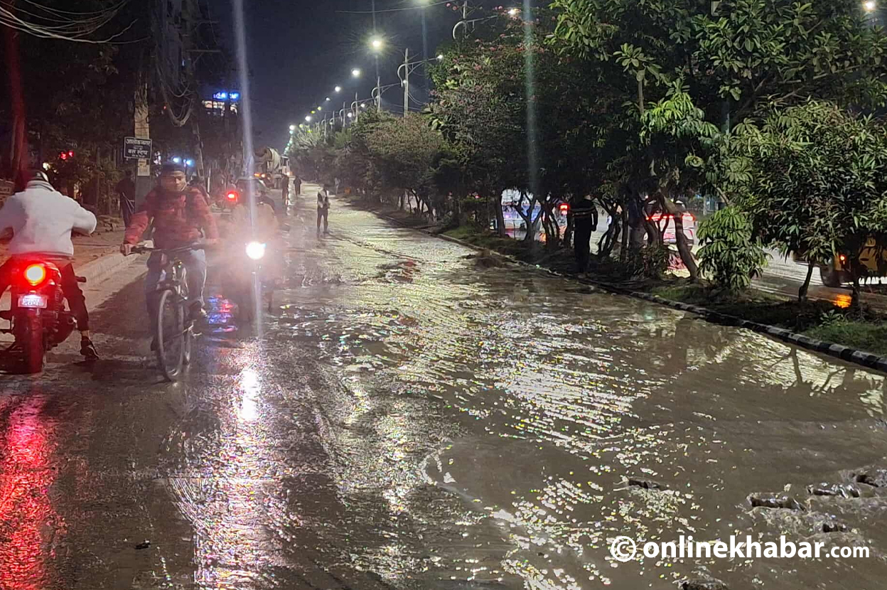 पाइप फुटेर अहिले सडक अस्तव्यस्त बन्न पुगेको छ । सडकमा गुडिरहेका सवारी साधन र मान्छेहरू पानी बगेसँगै समस्यामा परेका छन् ।