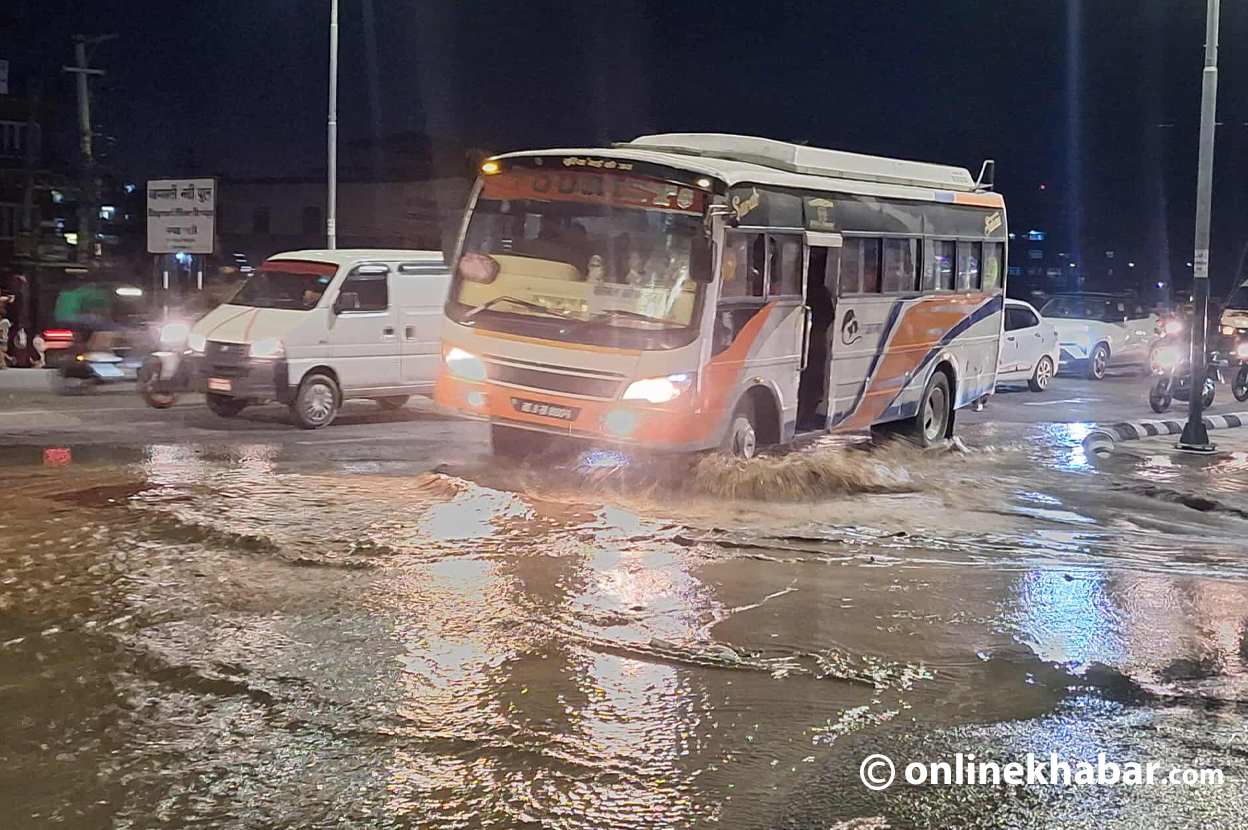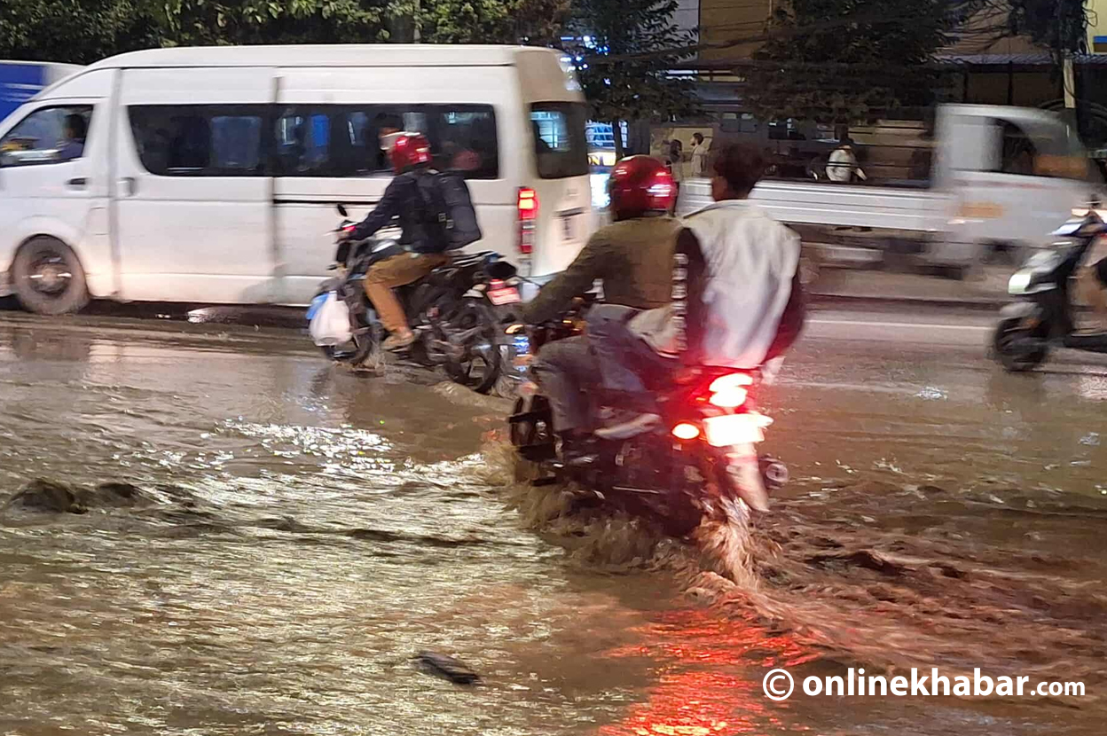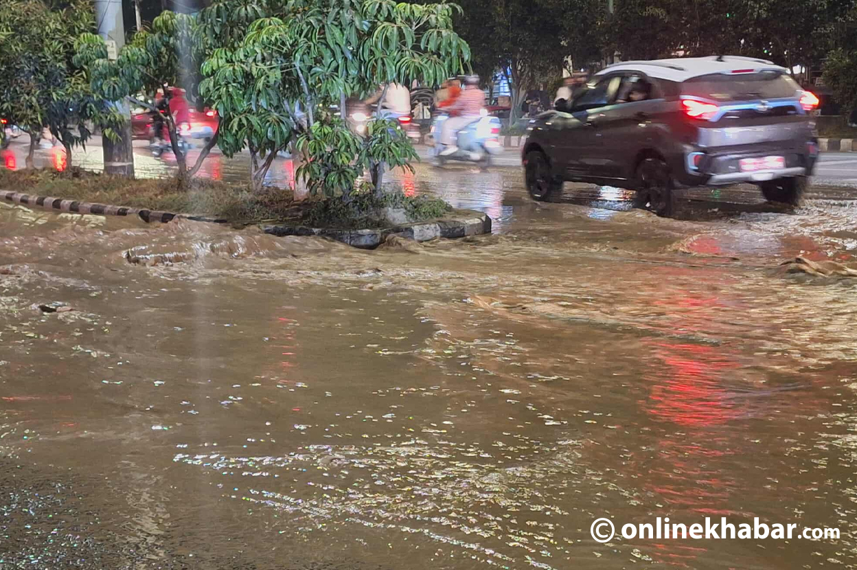२९ कात्तिक, काठमाडौं । काठमाडौंको नयाँ बानेश्वर–तीनकुने सडकखण्डमा खानेपानीको पाइप फुटेर सडक जलमग्न भएको छ । सिभिल अस्पतालबाट तीनकुनेतर्फ जाने बाटोमा पानीको पाइप फुटेको हो ।