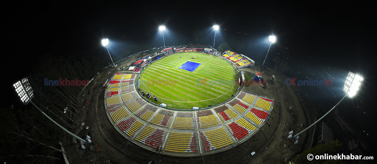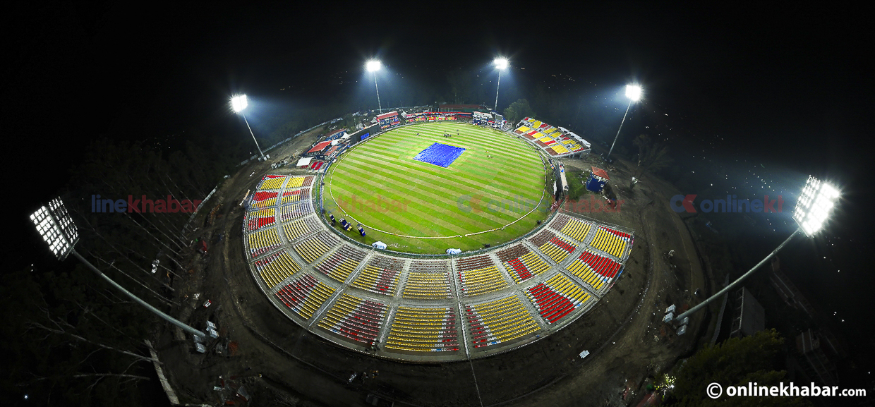 - ६ वटै फ्लडलाइट बाल्दा मैदान उज्यालो र आकर्षक देखिएको छ।