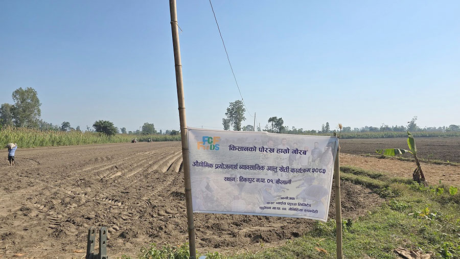 • रुपन्देहीको फस्ट च्वाइस फुडले कैलालीको टीकापुरमा १०० बढी किसानसँग २०० बिघा जमिनमा प्लान्टर मेसिनबाट व्यावसायिक आलु खेती सुरु गरेको छ।
