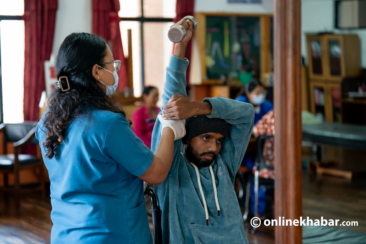 छालाको हेरचाह गर्ने, ह्विलचेयर चलाउने, लुगा लगाउने–फेर्ने, खाना पकाउने–खाने जस्ता दैनिक कामहरू, मांसपेसी बलियो बनाउने व्यायाम र मनोवैज्ञानिक तथा भावनात्मक परामर्श दिने काम भइरहेको छ ।