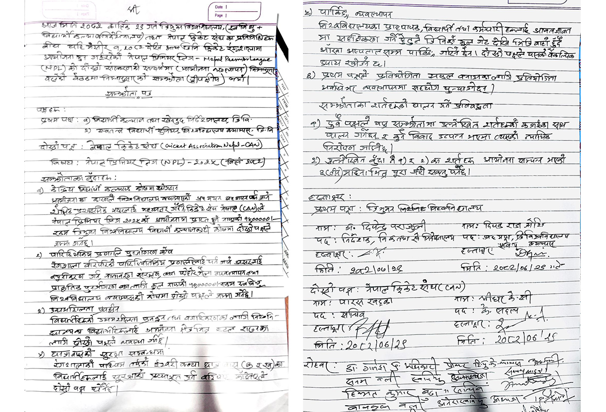 त्रिवि र स्ववियुलाई दिनुपर्ने यो रकम खेल सम्पन्न भएको तीन महिनाभित्र उपलब्ध गराउनुपर्ने सम्झौतामा लेखिएको छ ।
