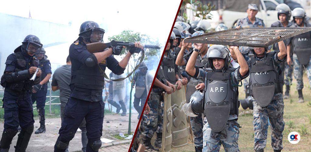 प्रहरी र सशस्त्रको ऐनबाटै प्रष्ट हुन्छ कि सामान्य अवस्थाको भीड, नारा जुलुस रोक्न प्रहरी परिचालन हुनेछ । दंगाकै अवस्था आएमा भने सशस्त्र प्रहरी परिचालन हुनेछ ।