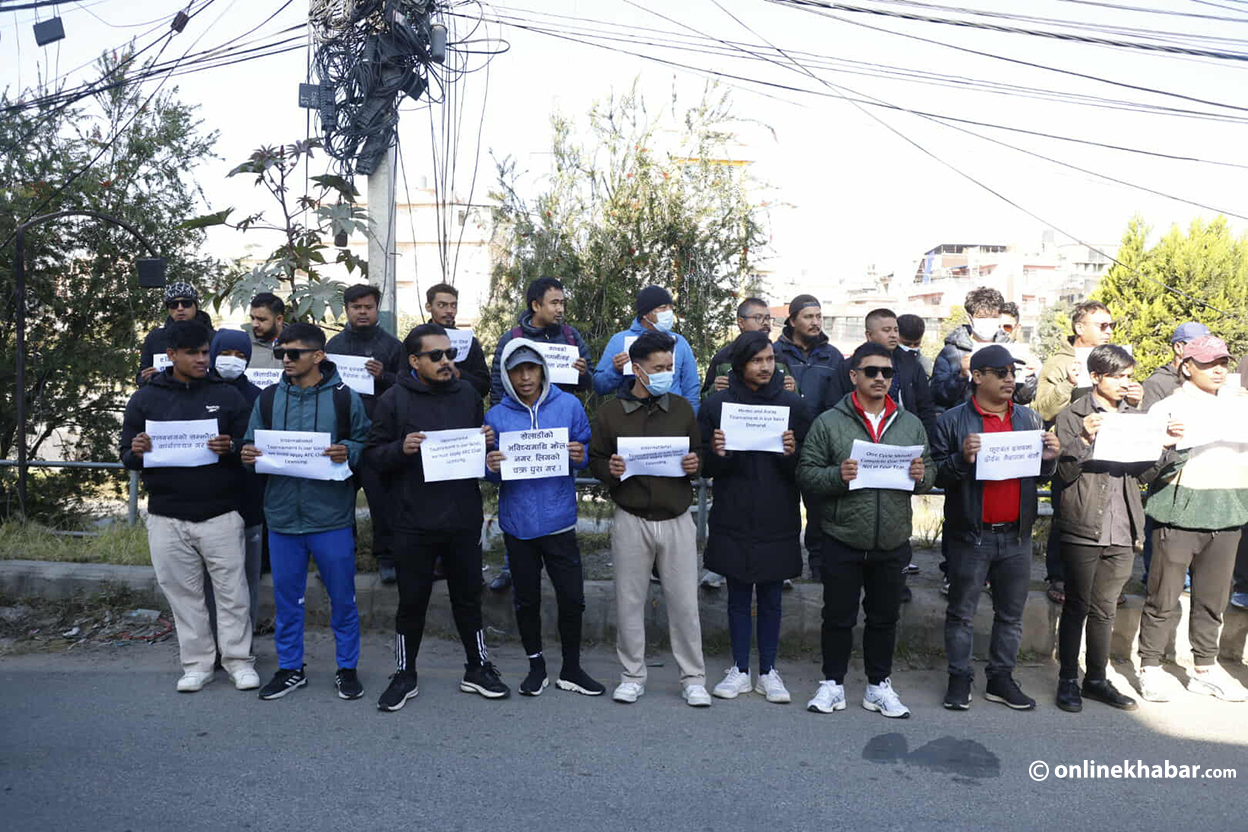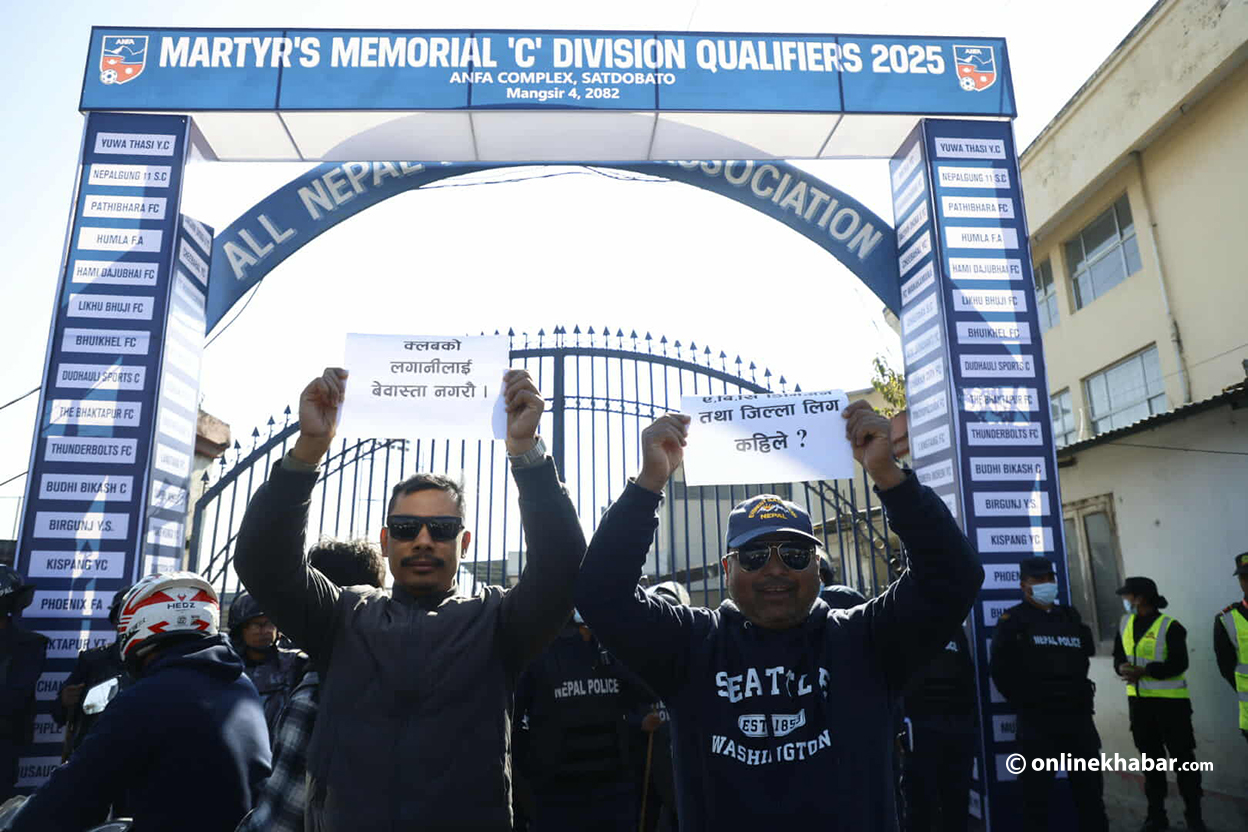 काठमाडौं । ए डिभिजन फुटबल क्लबहरुले अखिल नेपाल फुटबल संघ (एन्फा) को कार्यालय अगाडि धर्ना दिएका छन् ।