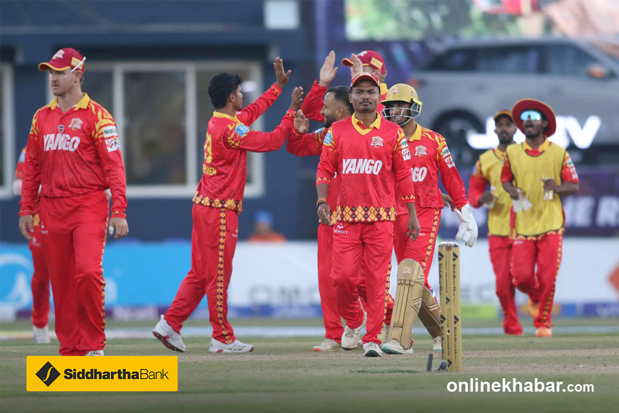 लुम्बिनी लायन्सका स्पीनर अभिशेष गौतमको बलिङ पनि किफायती रह्‍यो । उनले ३ ओभरमा १५ रन मात्र दिएर २ विकेट लिए ।