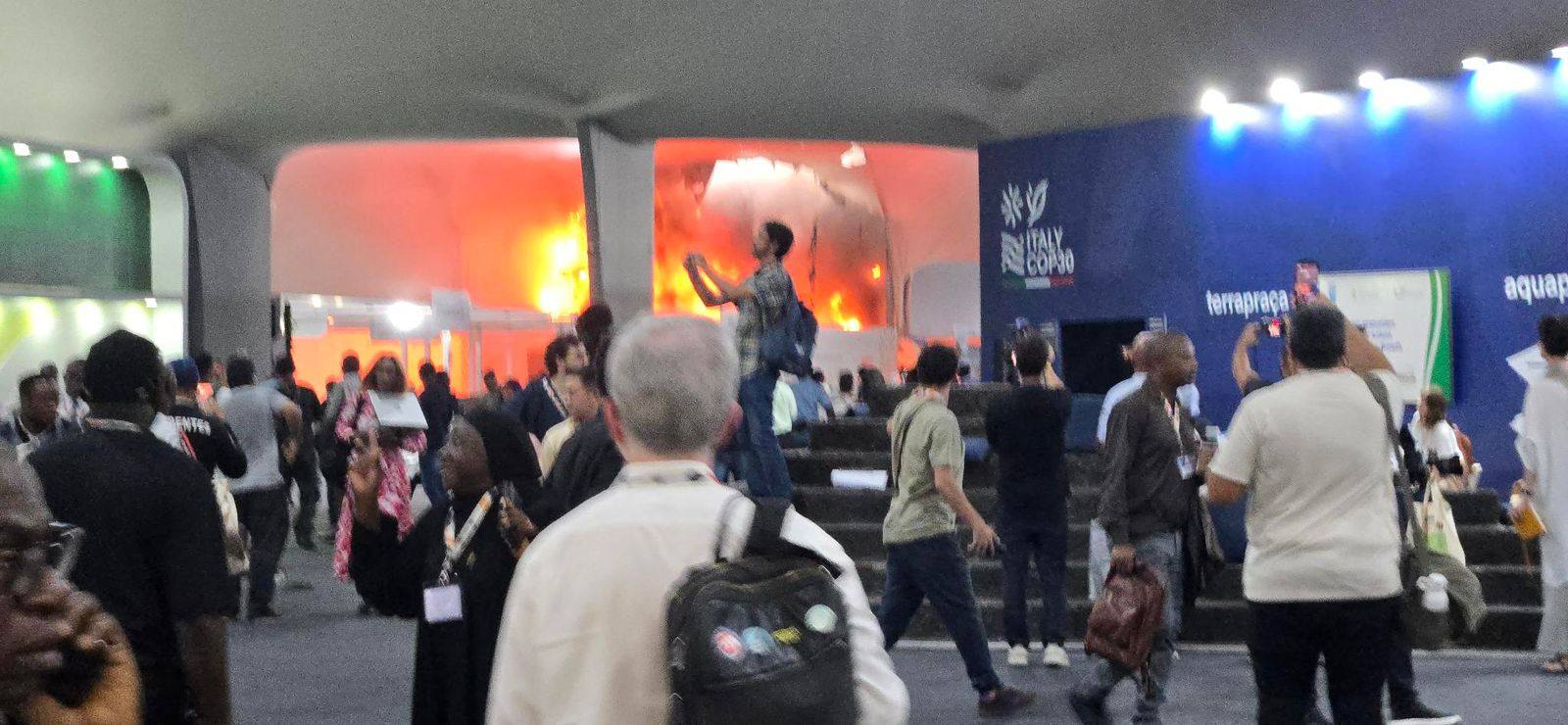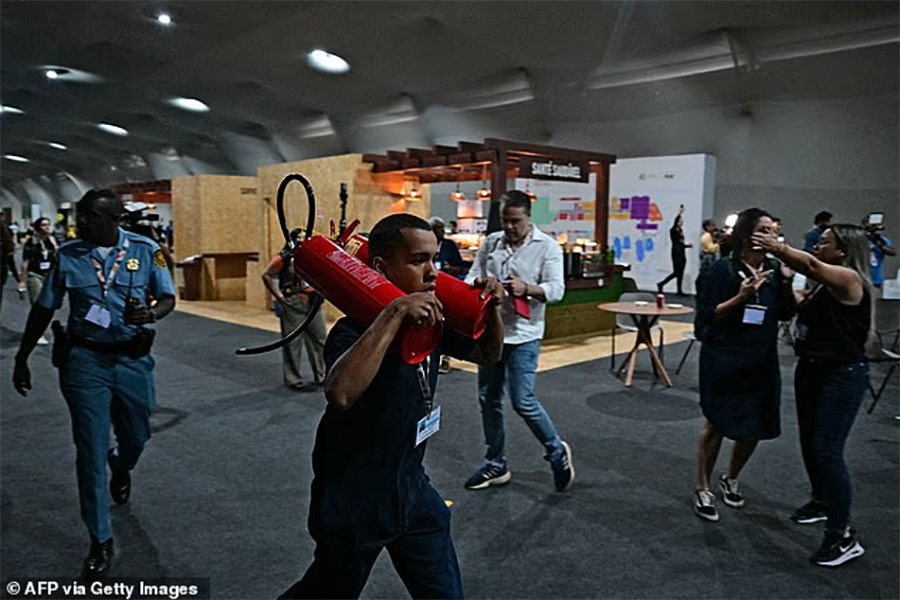 आयोजकले भनेको छ, ‘सम्मेलनस्थलको ब्लु जोनमा आगलागी भएको थियो । दमकल र युएन सुरक्षाकर्मीहरू तत्कालै परिचालन भएर आगो करिब ६ मिनेटमै नियन्त्रणमा ल्याइयो । मानिसहरूलाई सुरक्षित रूपमा बाहिर निकालियो ।’