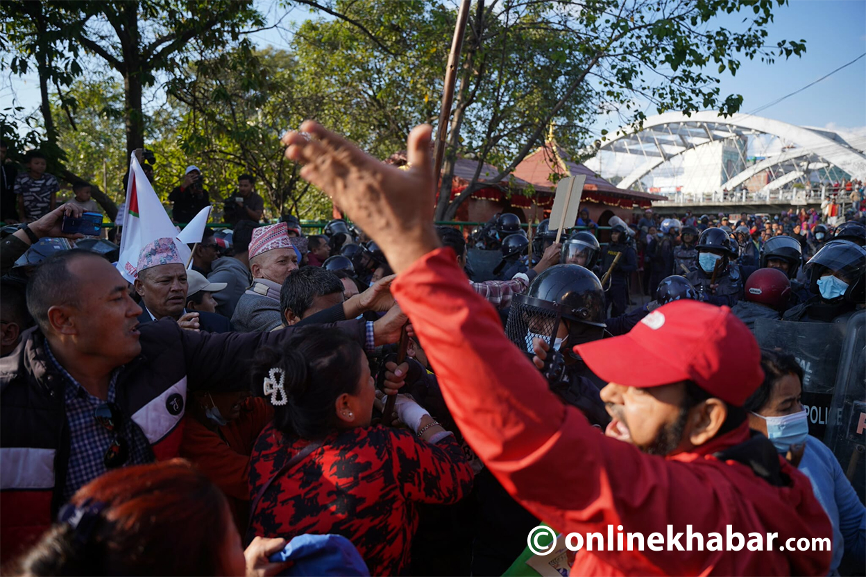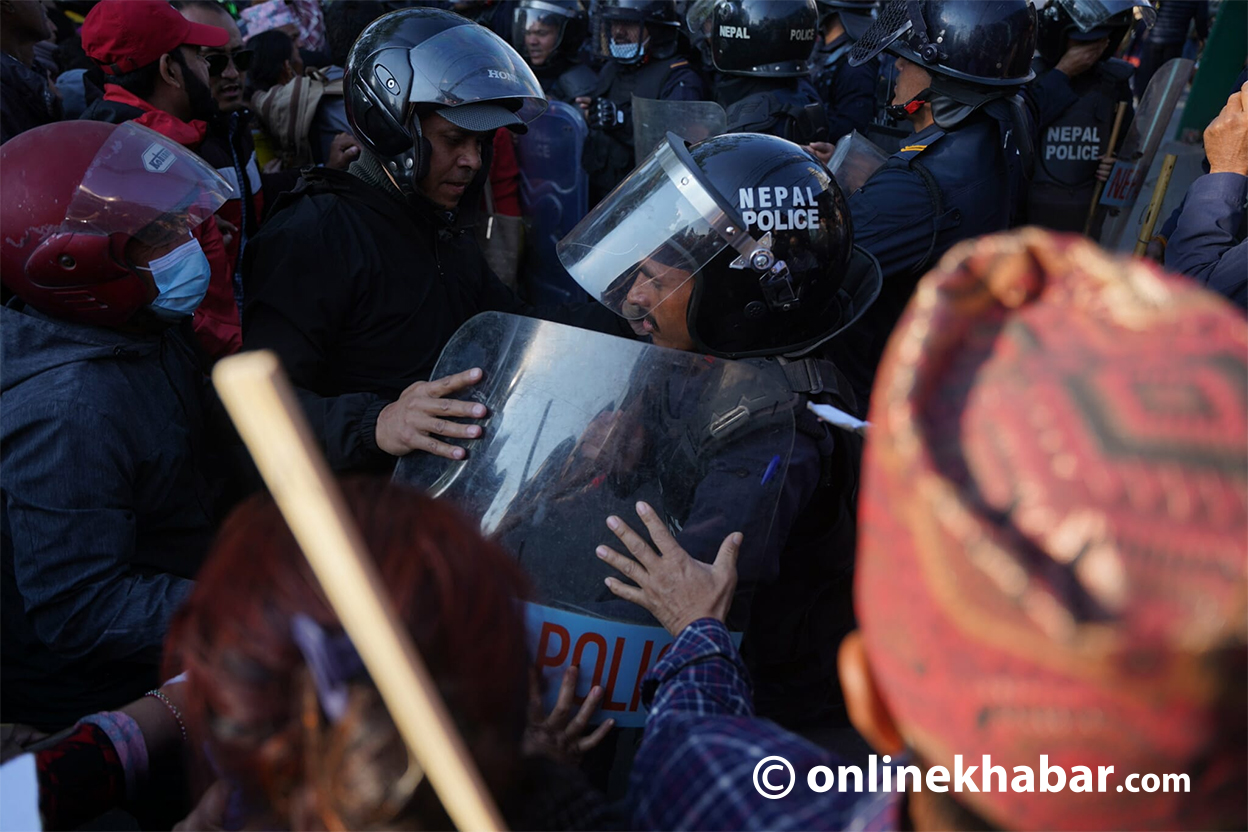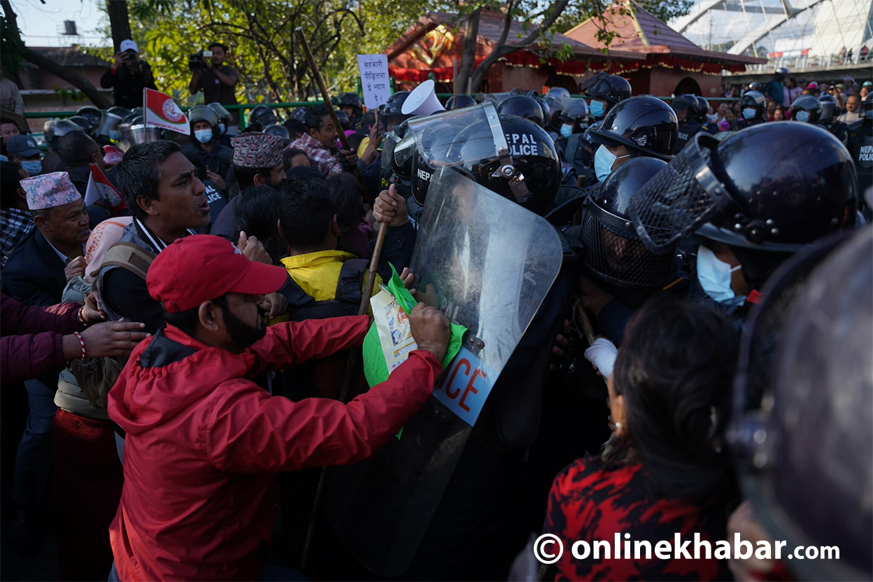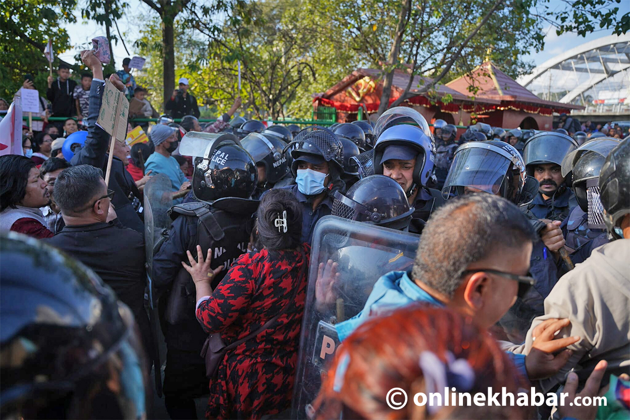 - प्रदर्शनकारीले नाराबाजी गर्दै कार्यालयको गेट तोडफोड गरेका थिए र प्रहरीले करिब डेढ दर्जनलाई नियन्त्रणमा लिएको छ।