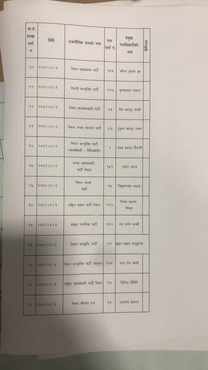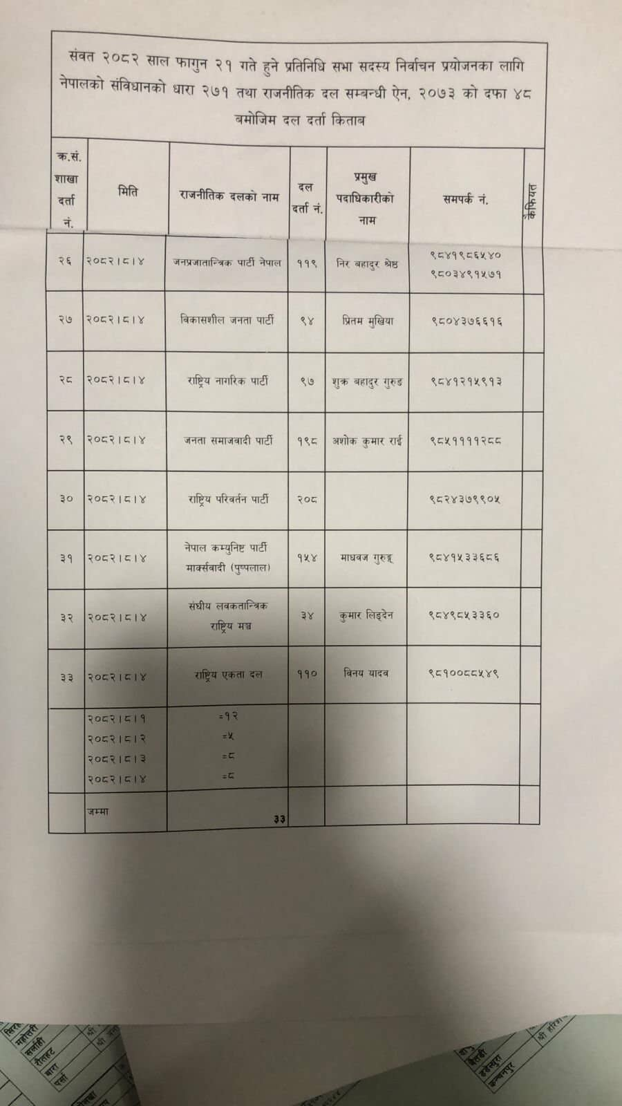 निर्वाचन आयोगमा ३७ दल दर्ता, कांग्रेस-एमालेको बाँकी