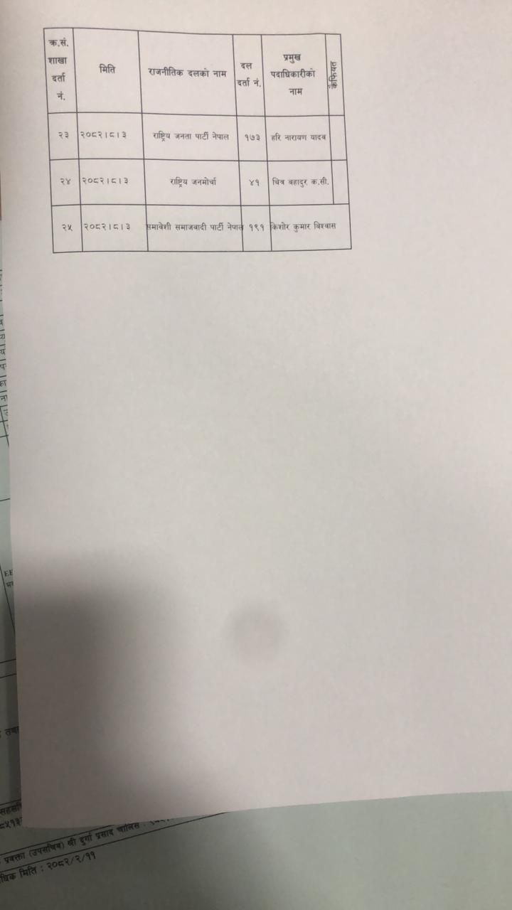 नेपाली कांग्रेस, नेकपा एमाले लगायतका दलहरू भने प्रतिनिधिसभा सदस्यको निर्वाचन प्रयोजनका लागि निर्वाचन आयोगमा जान बाँकी छ ।