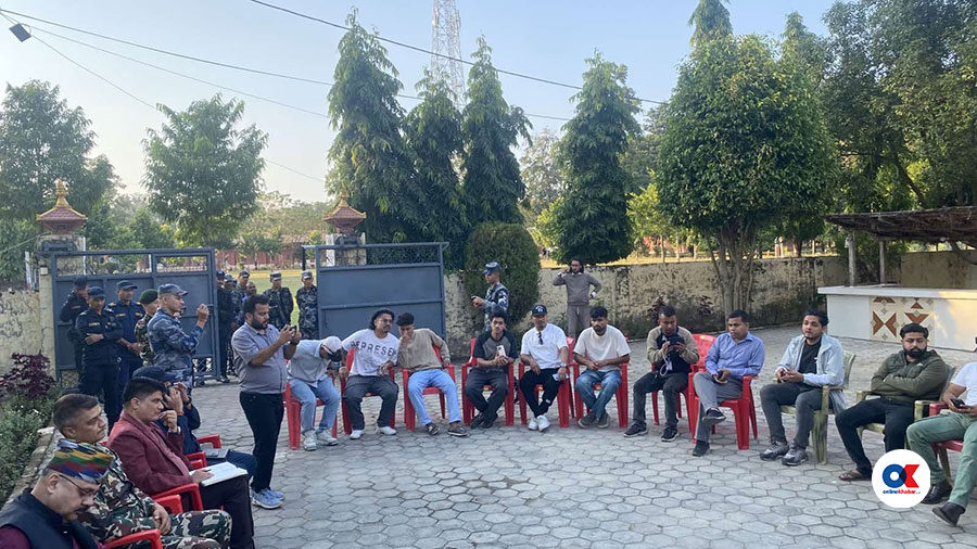 Generated by OK AI. Editorially reviewed.- बारा प्रशासन र जेनजी प्रदर्शनकारीका प्रतिनिधिबीच पथलैयास्थित सशस्त्र प्रहरी प्राविधिक शिक्षालयमा वार्ता सुरु भएको छ।