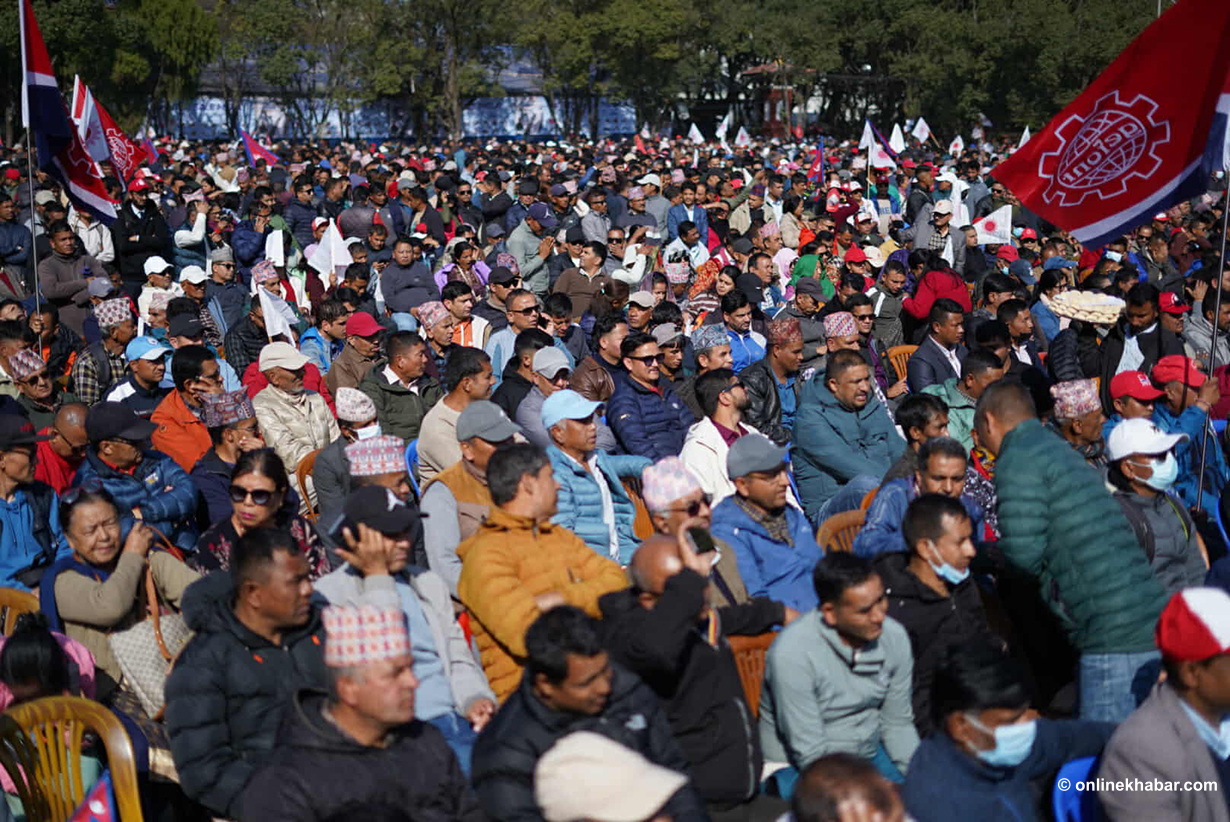 भृकुटीमण्डपमा भएको सभामा पूवप्रधानमन्त्री समेत रहेका केपी शर्मा ओली र नेता शंकर पोखरेलले सम्बोधन गरेका छन् ।