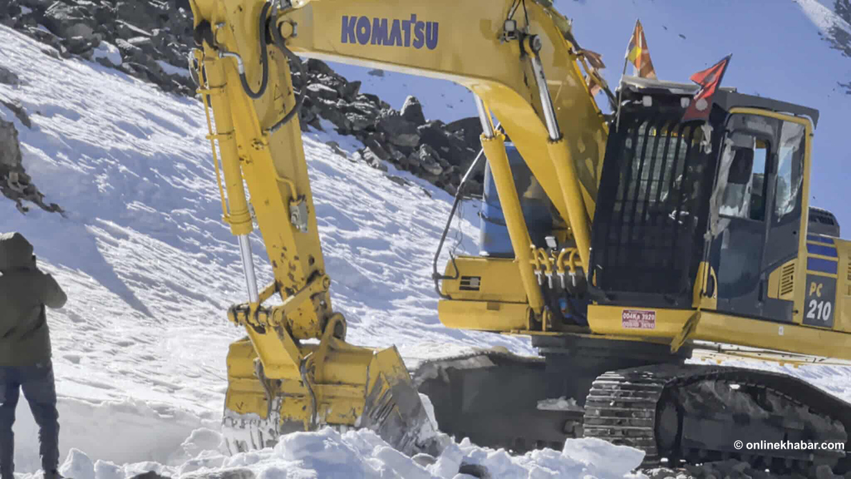 न्यालु लेकको सडकमा जमेको बरफ फुटाउन सात घण्टा लागेको वडाध्यक्ष तामाङको भनाइ छ ।