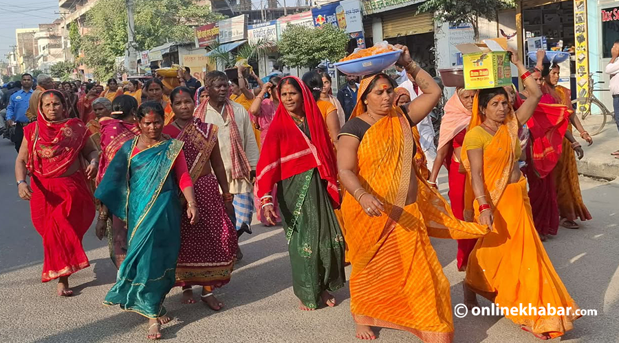 ७ मंसिर, जनकपुरधाम । सप्ताहव्यापी सीताराम विवाह पञ्चमी महोत्सवको चौथो दिन आज तिल्कोत्सव मनाइएको छ । तिल्कोत्सवमा जानकी मन्दिरबाट एकहजार एक भार लिएर साधुशन्त राममन्दिरमा पुगेर तिल्कोत्सव मनाइएको हो ।