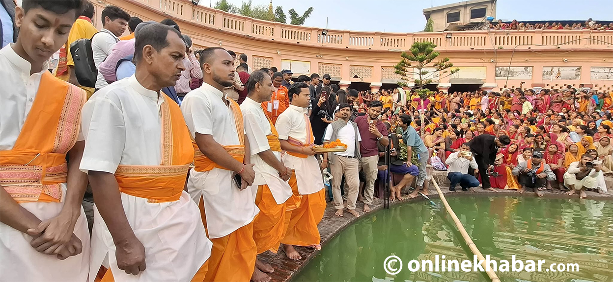 जानकी मन्दिरबाट बाजागाजासहित जनकपुरधामको एतिहासिक गंगासागरमा पुगेर भव्यतापूर्वक जानकीको मटकोर सम्पन्न गरिएको हो ।